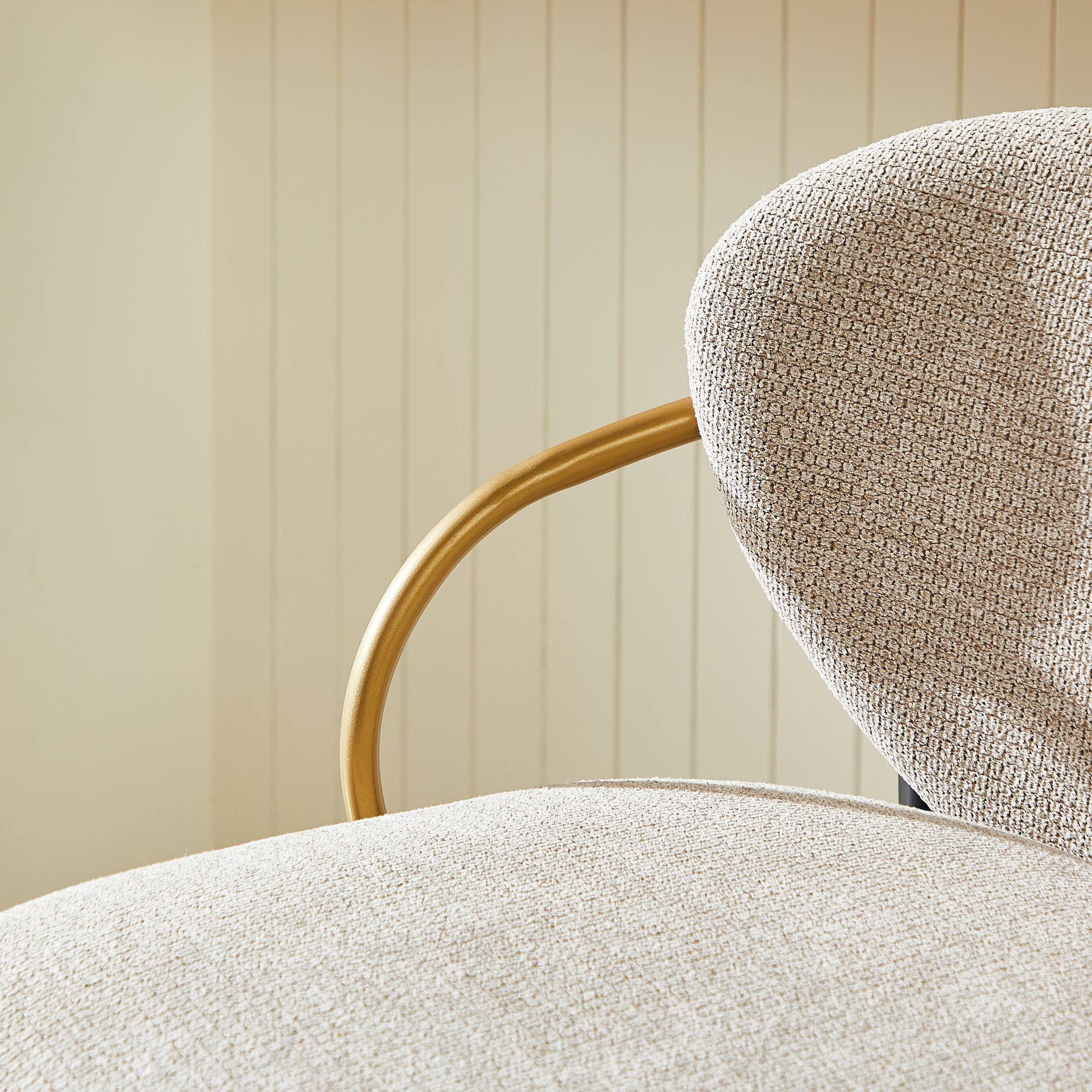 Set of 2 Bar Stools Adjustable Height Backrest Footrest - Chenille Light Brown/Black Gold
