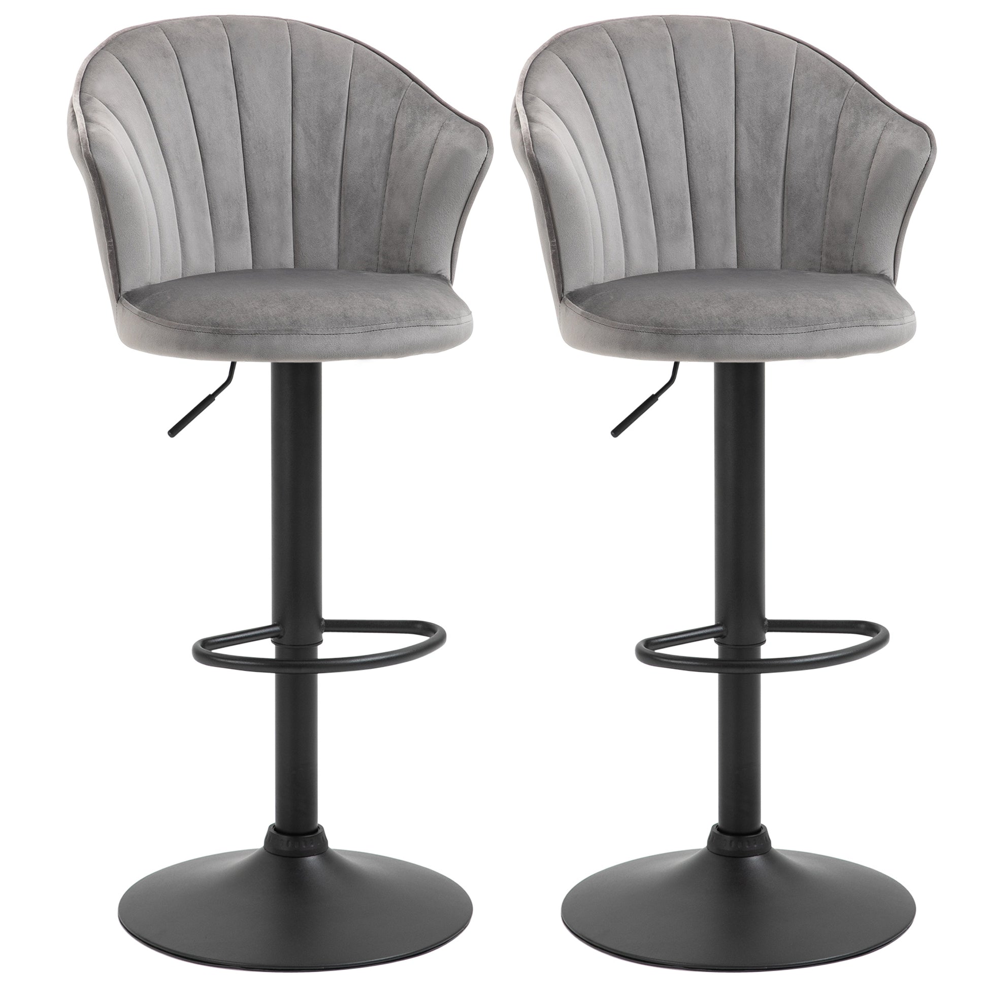 Set of 2 Bar Stools, Swivel Height-Adjustable with Backrest, Velvet Grey