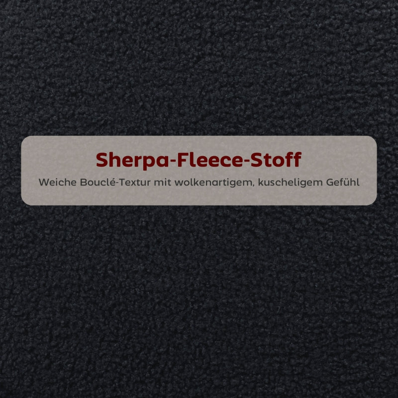 Set of 2 Bar Stools, Upholstered Seat and Footrest, Black Fleece/Metal
