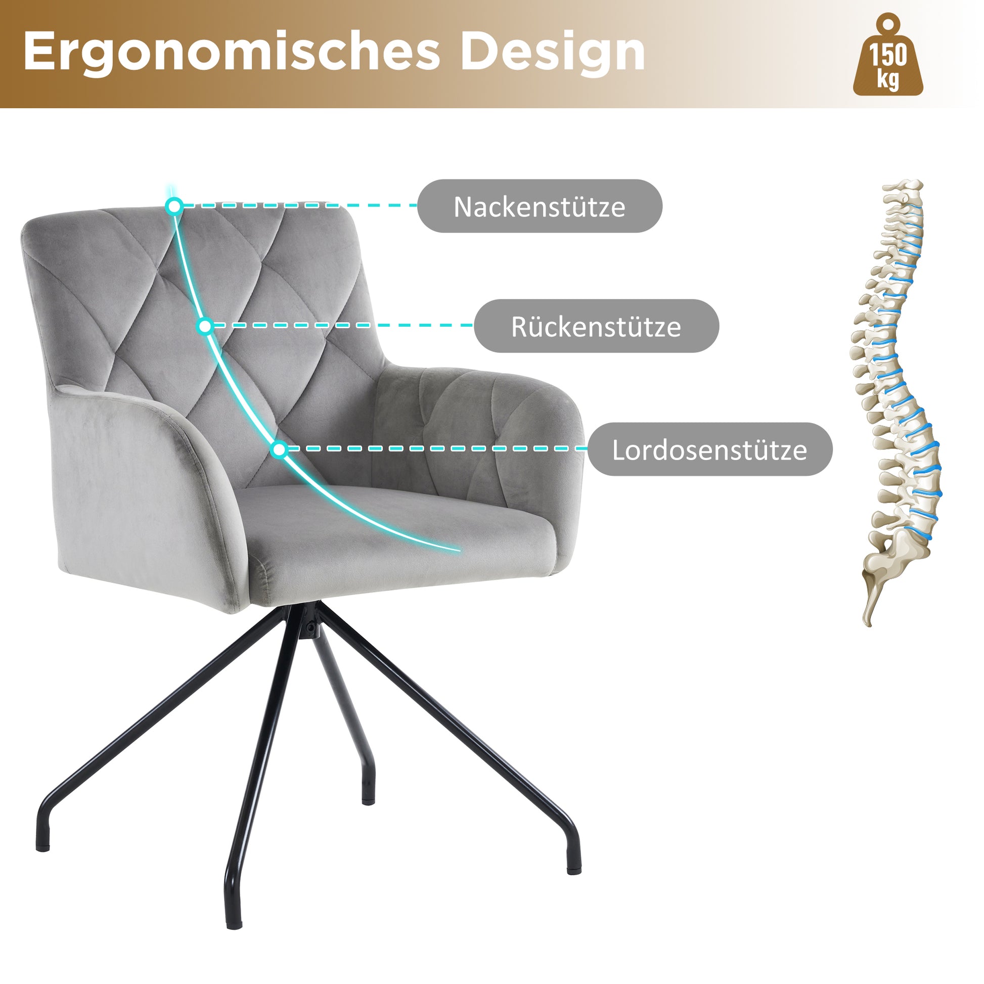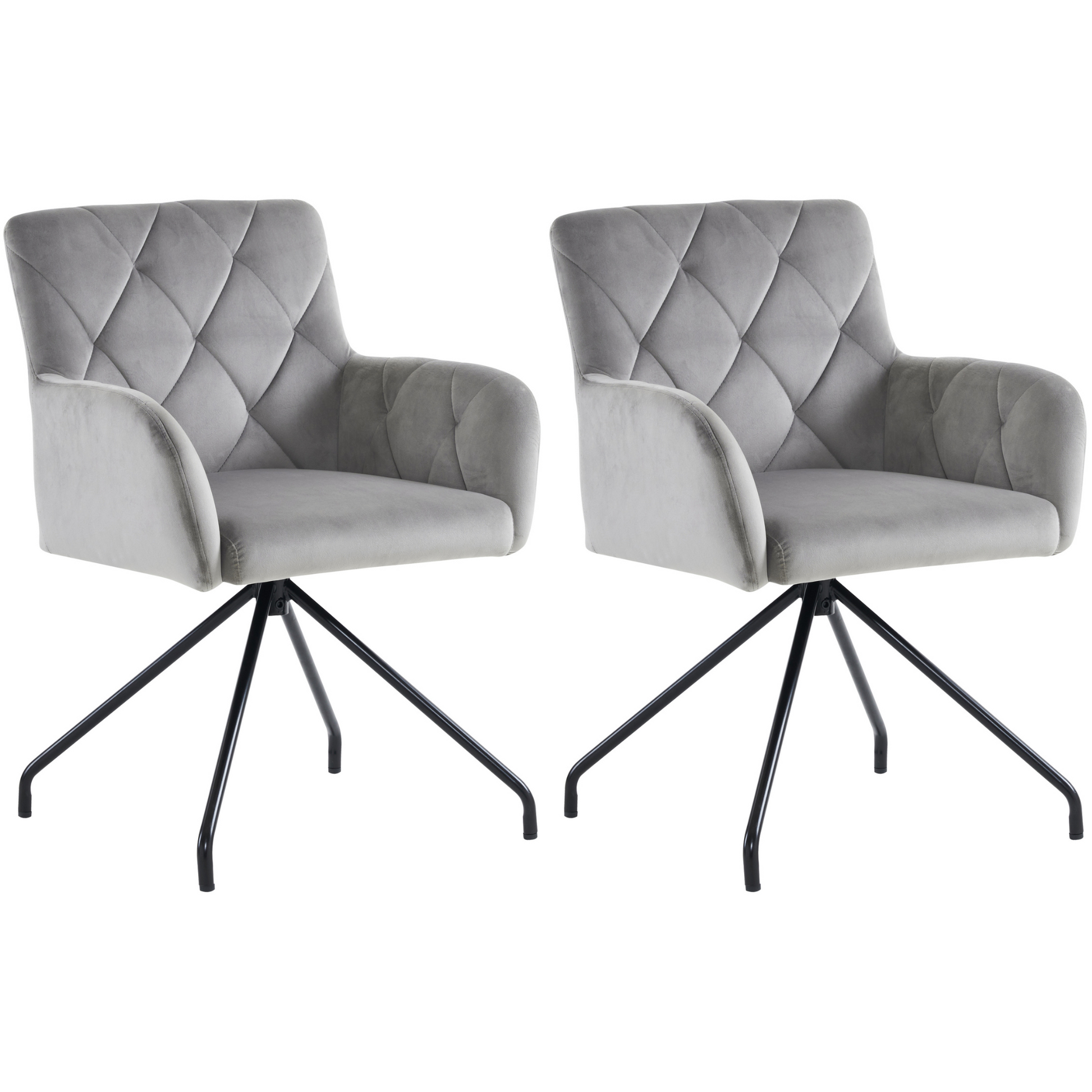 Set of 2 Dining Chairs with Diamond Pattern and Lumbar Support, Light Grey Velvet