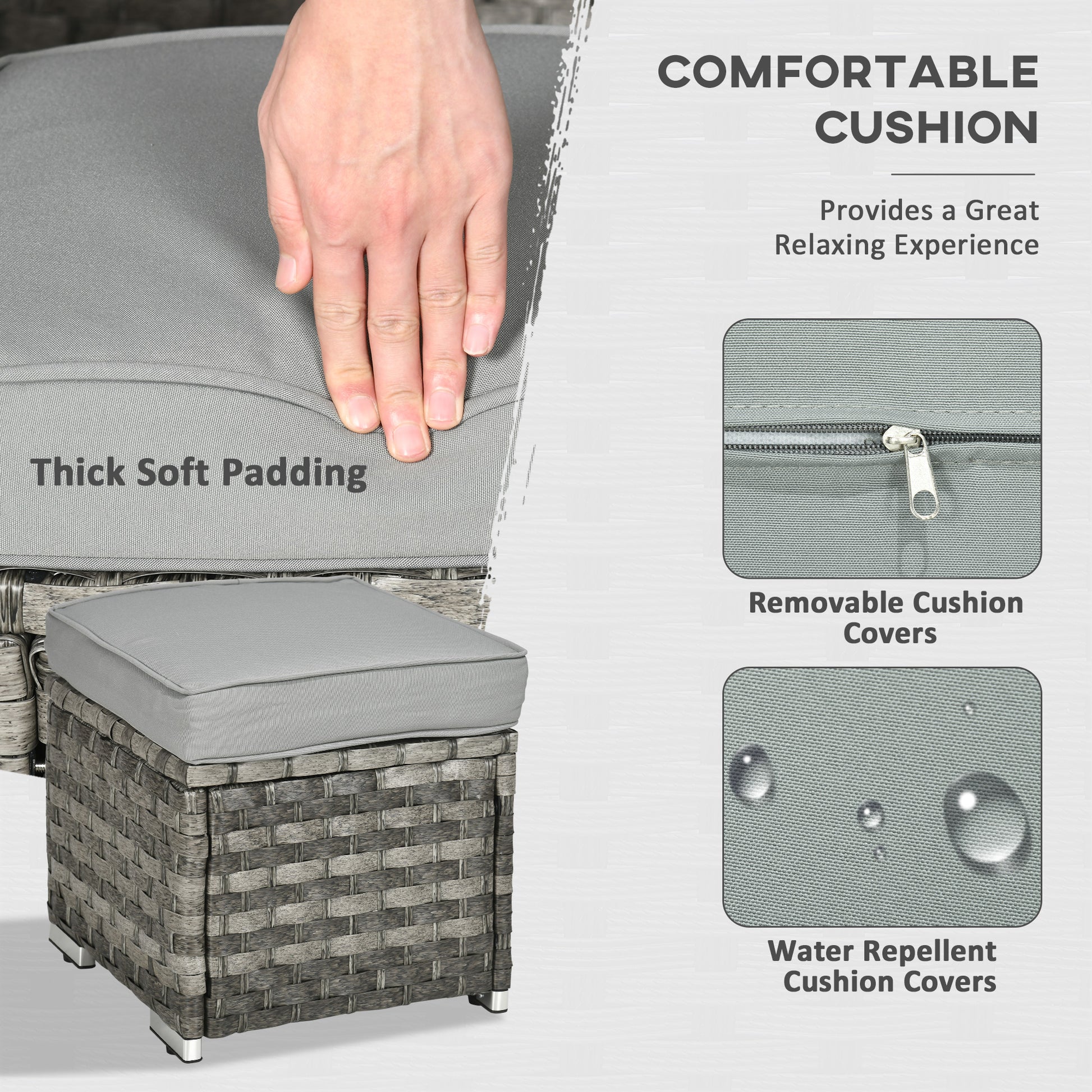 Seven-piece set: Rattan garden furniture set comes with two corner loveseats, a standard loveseat, three footstools and matching fire pit table. Freestanding pieces to organise into a shape you want.