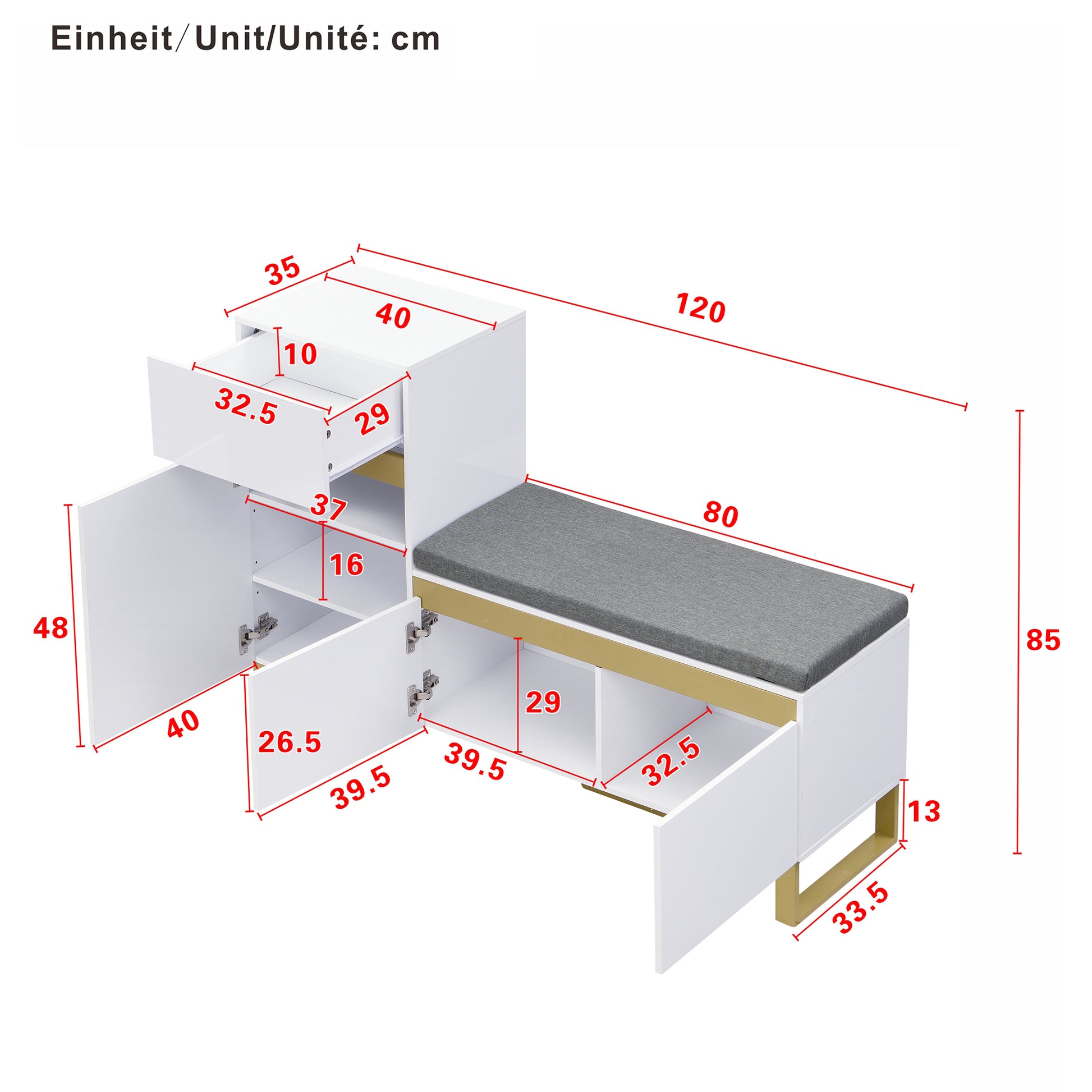 2. Manual measurement was used, and some reasonable errors may occur.Selling Points:1. Multifunctional design with integrated storage and shoe-changing function.