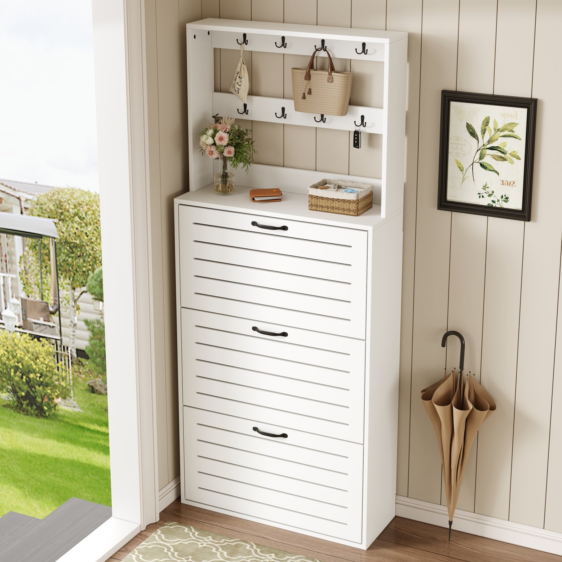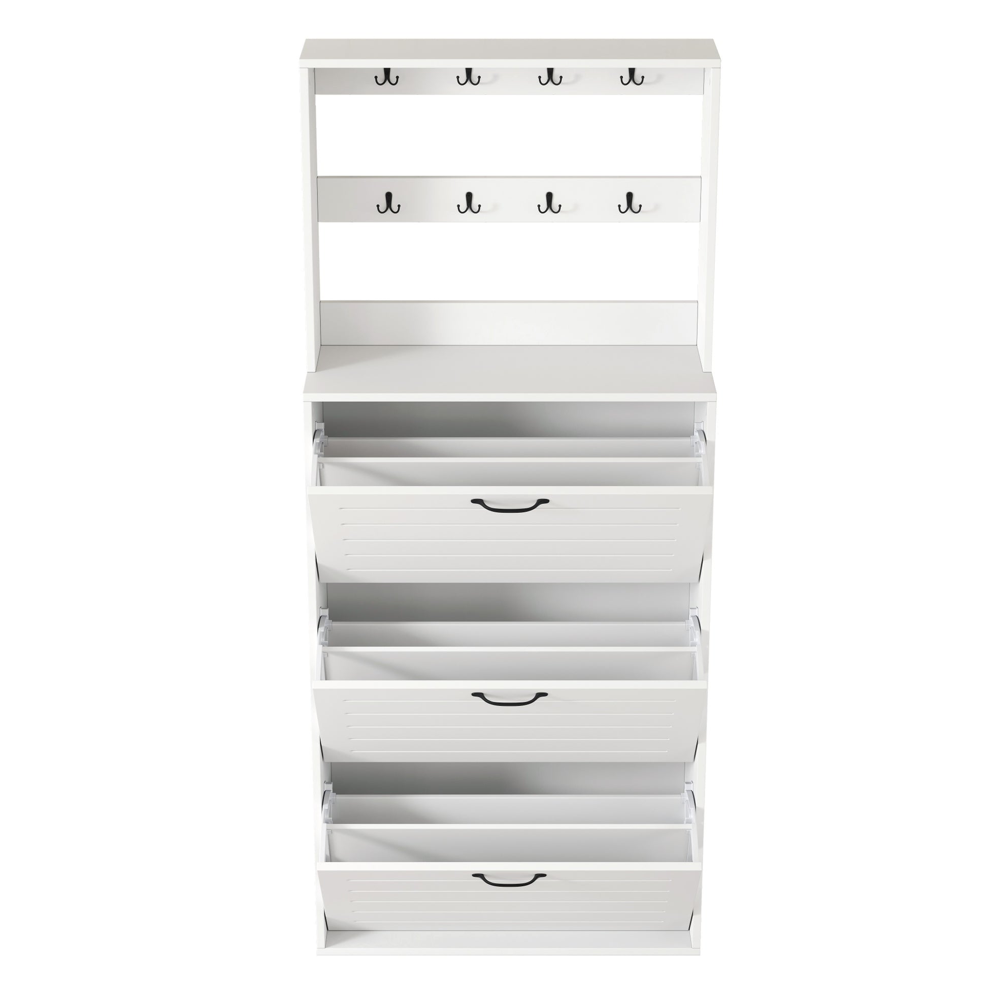 Shoe Cabinet with 3 Doors, Hooks, 15 Pairs Capacity