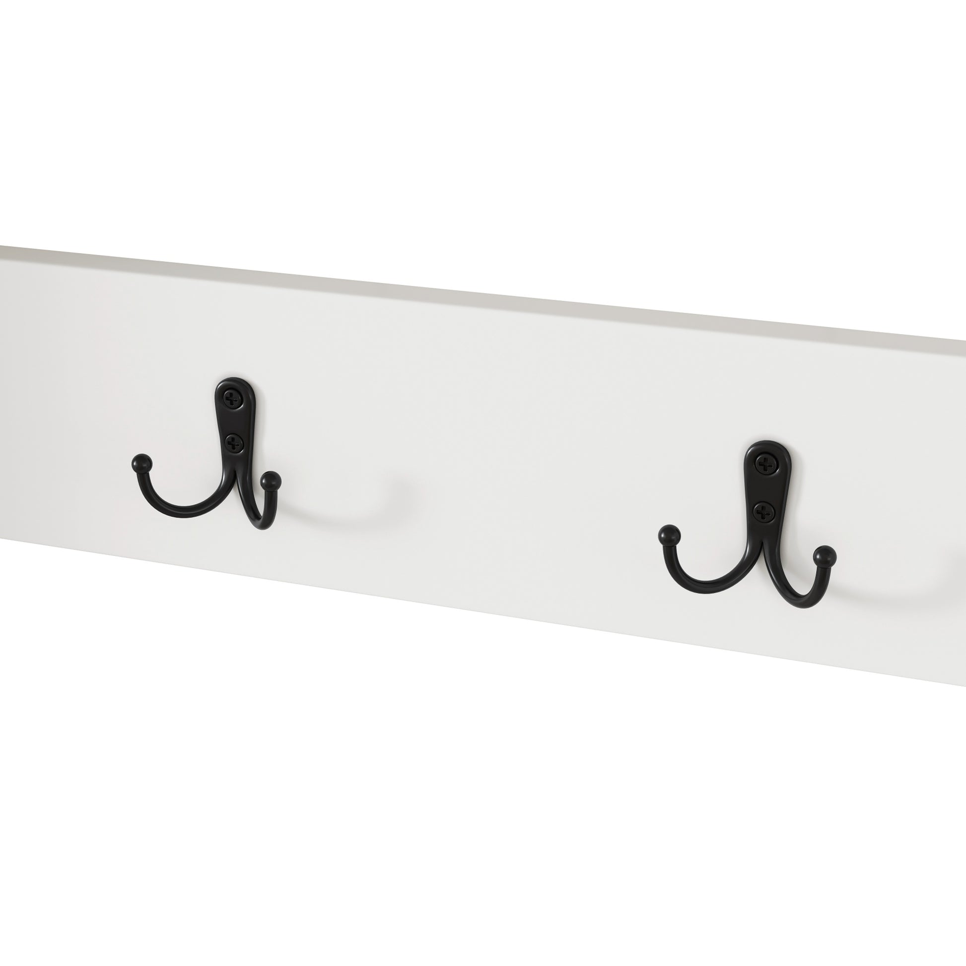 The upper level features eight convenient hooks for hanging keys, bags, and hats.