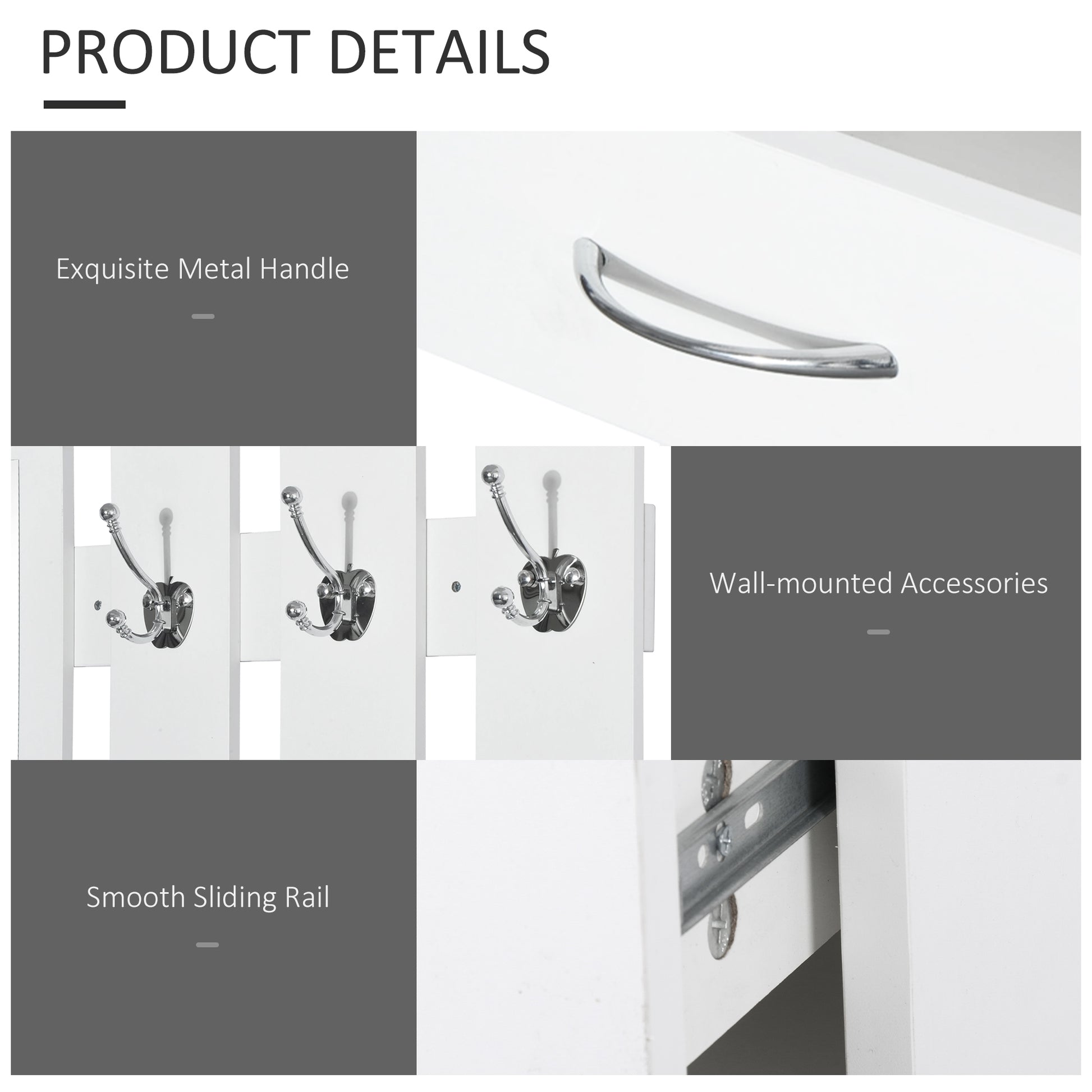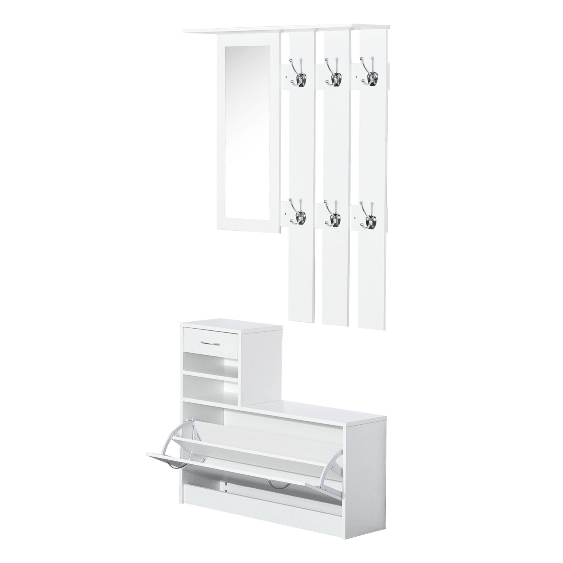 Shoes Storage Chest and Cloths Rack Unit with Mirror and Multiple Shelves, White