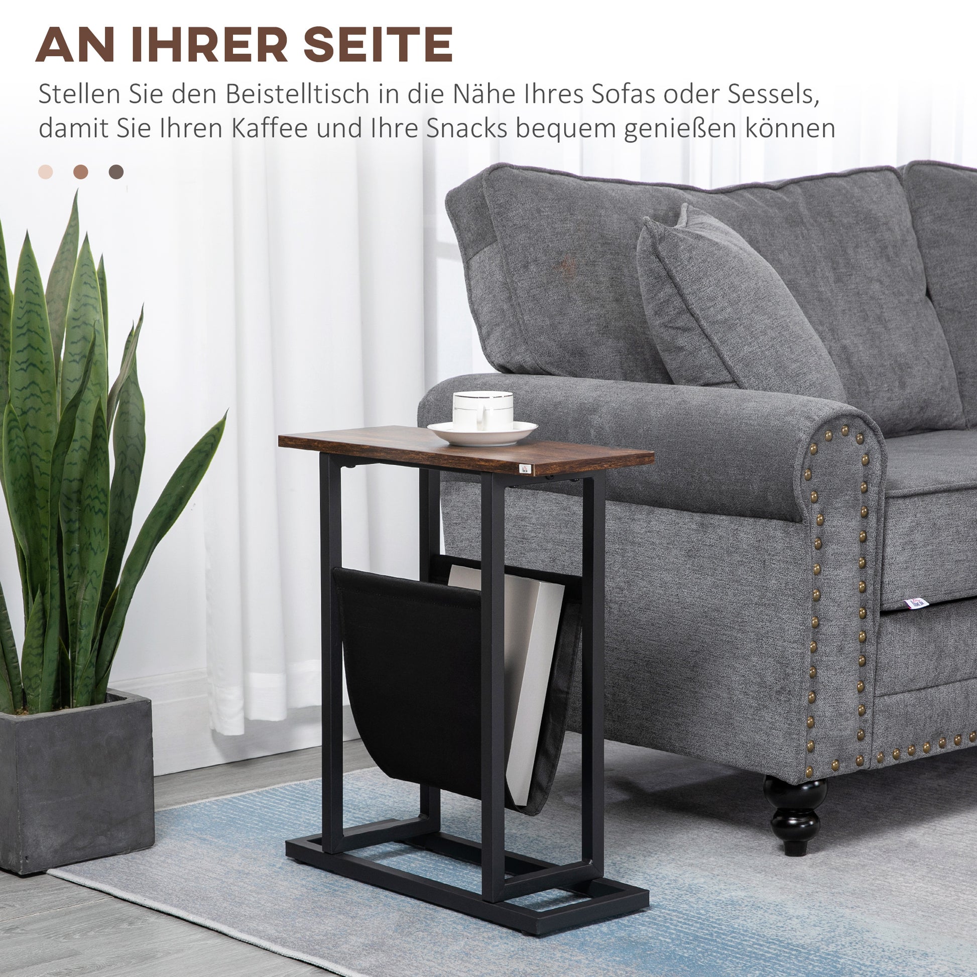Side Table Coffee Table Nightstand, Fabric Bag Steel Frame, Dark Brown and Black