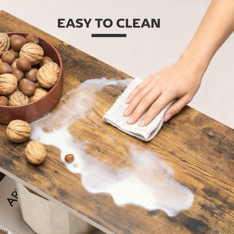 Reliable and stable. Made from particle board, our side table is strong for everyday use. The scratch-resistant melamine surface wipes clean easily, and protective foot pads keep your floors scratch-free.