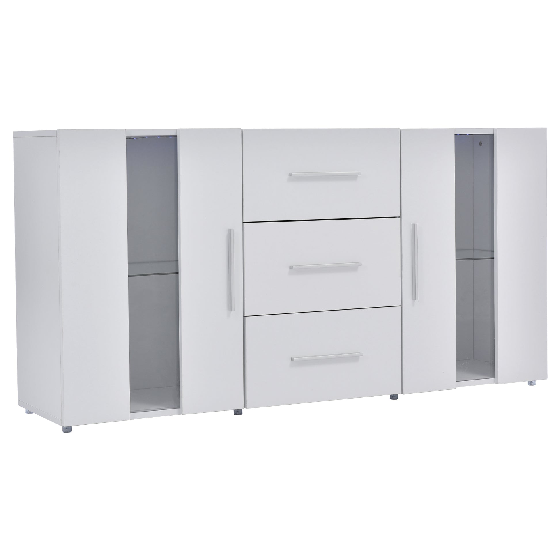 This side cabinet features 16 LED colors, not only making it more convenient to retrieve items but also adding sophistication to your dining room. Additionally, this TV cabinet includes transparent acrylic door panels and tempered glass shelves, offering a beautiful aesthetic that complements any decor in your bedroom or living room.