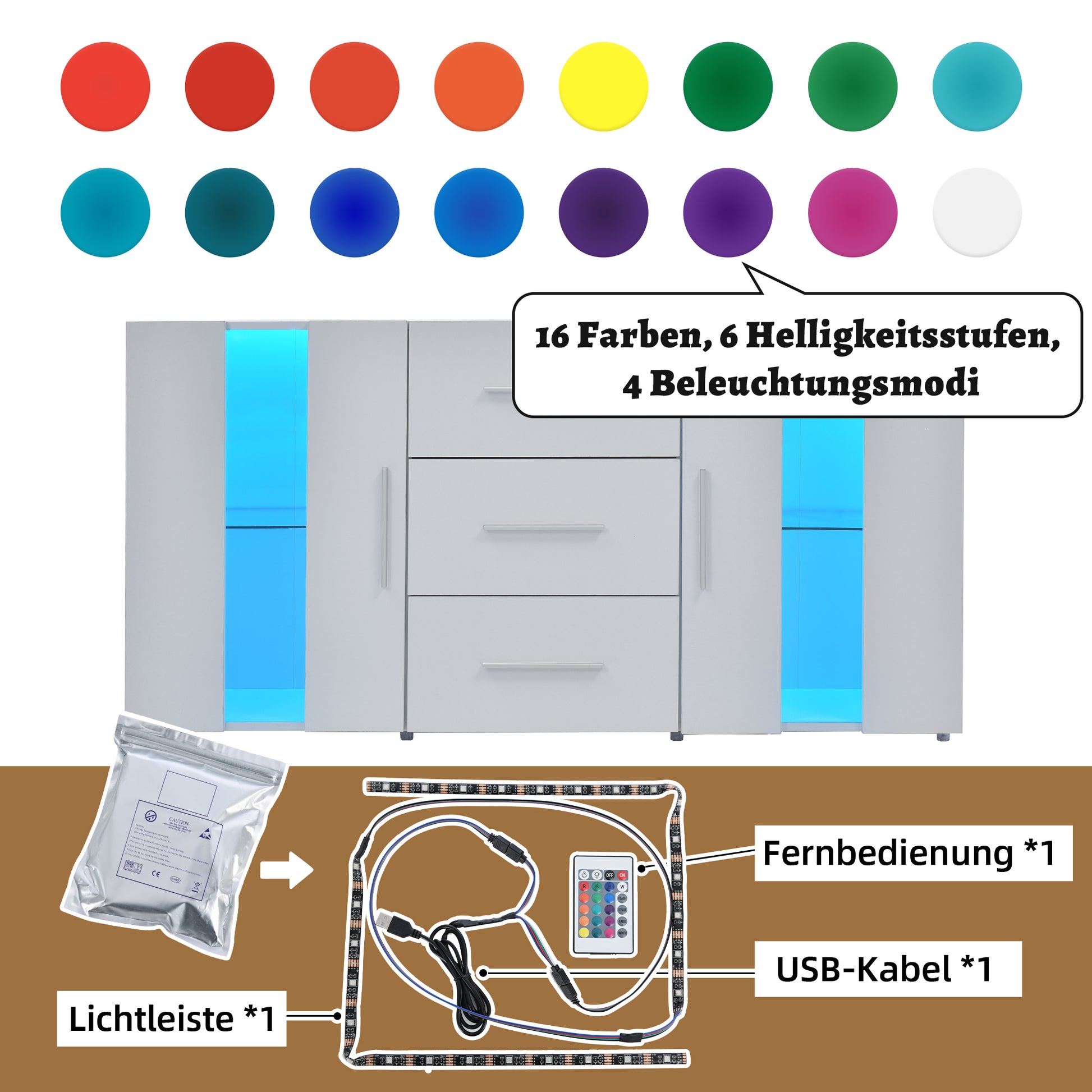 Sideboard, 16-Color LED Lights, 140x35x70cm, for Dining & Living Room