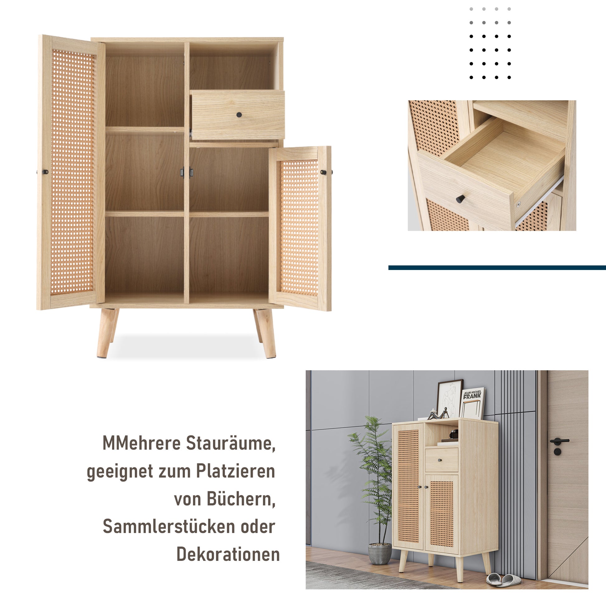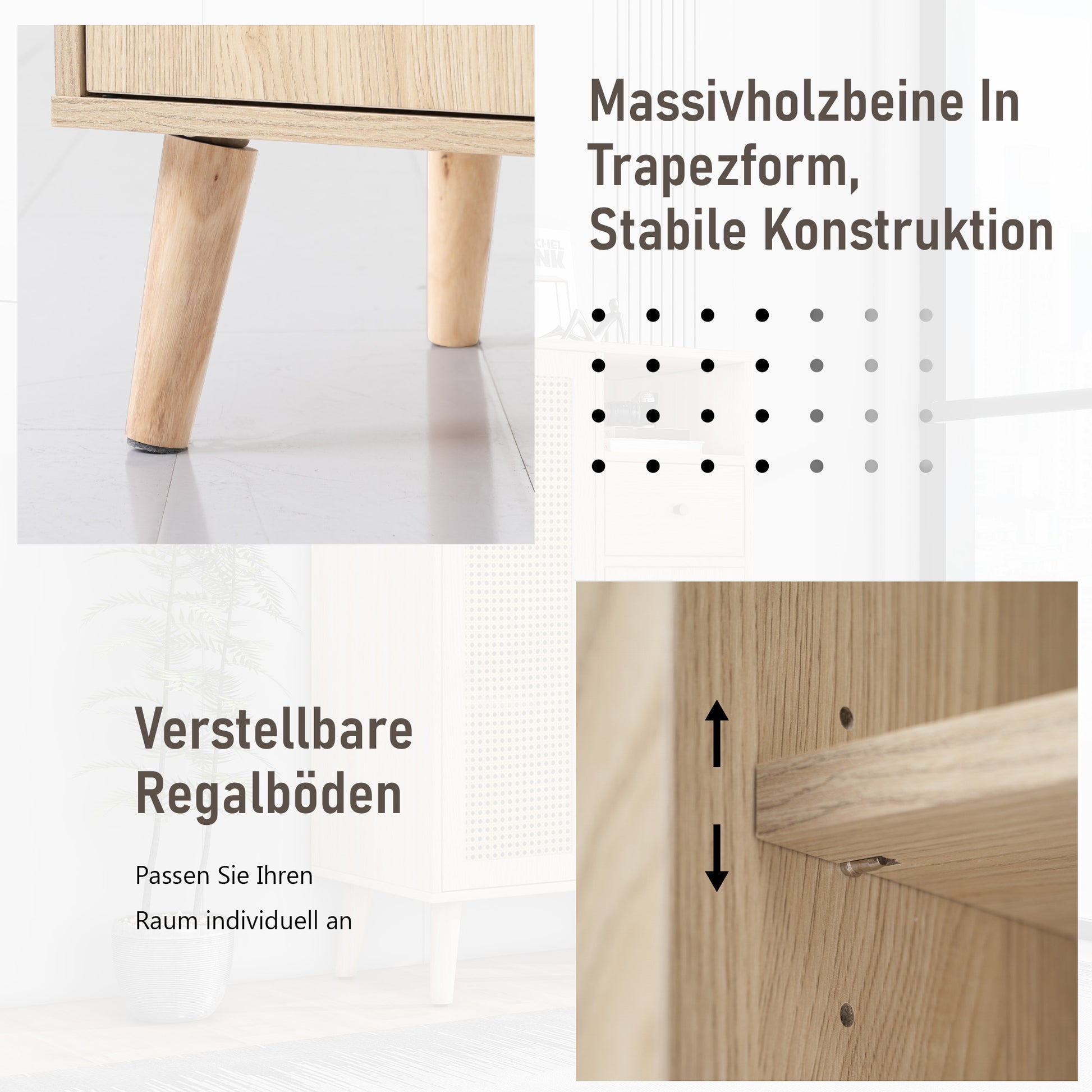 Sideboard, 2 rattan doors, 1 drawer, large storage, wood look