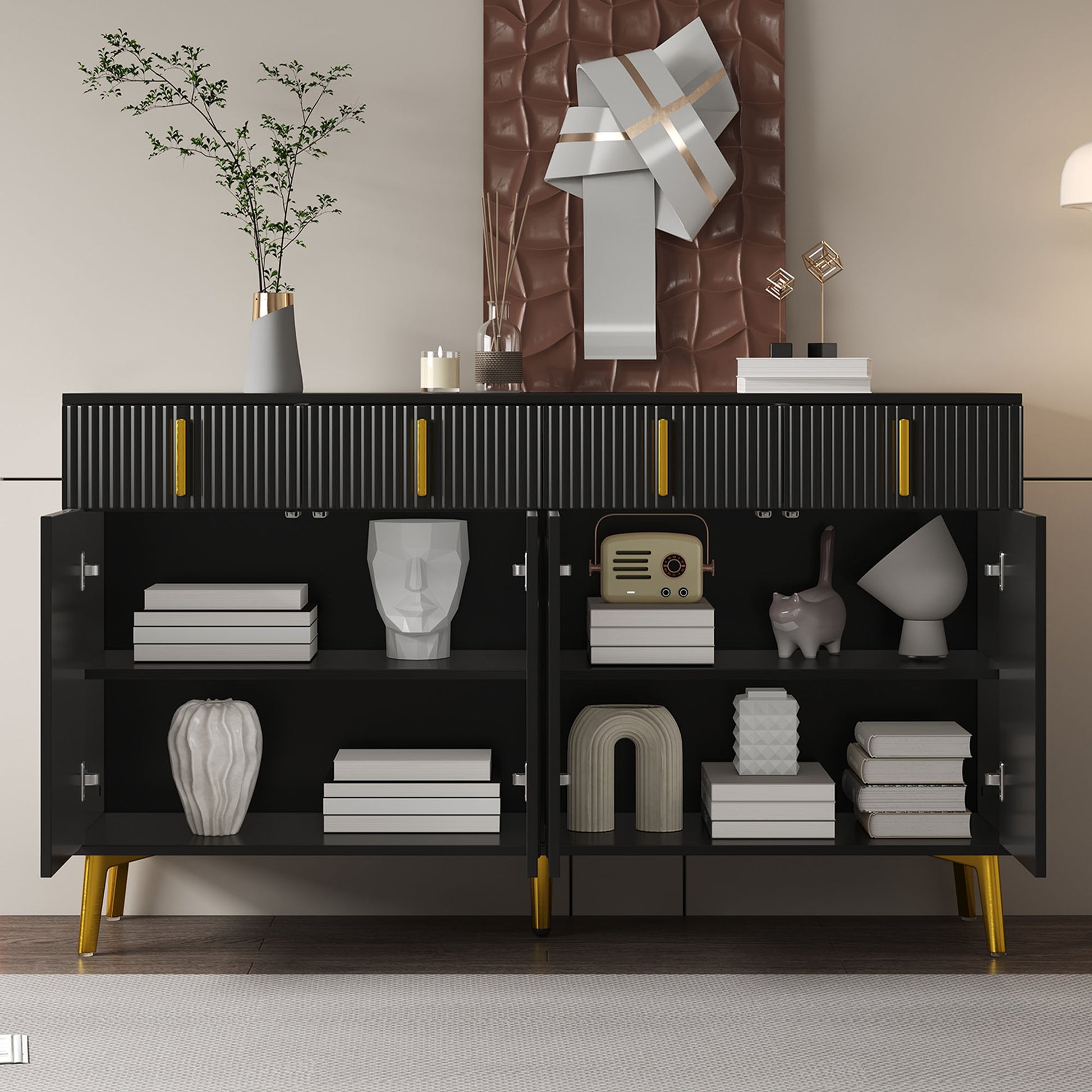 Sideboard, 4 Doors 4 Drawers, Gold Accents