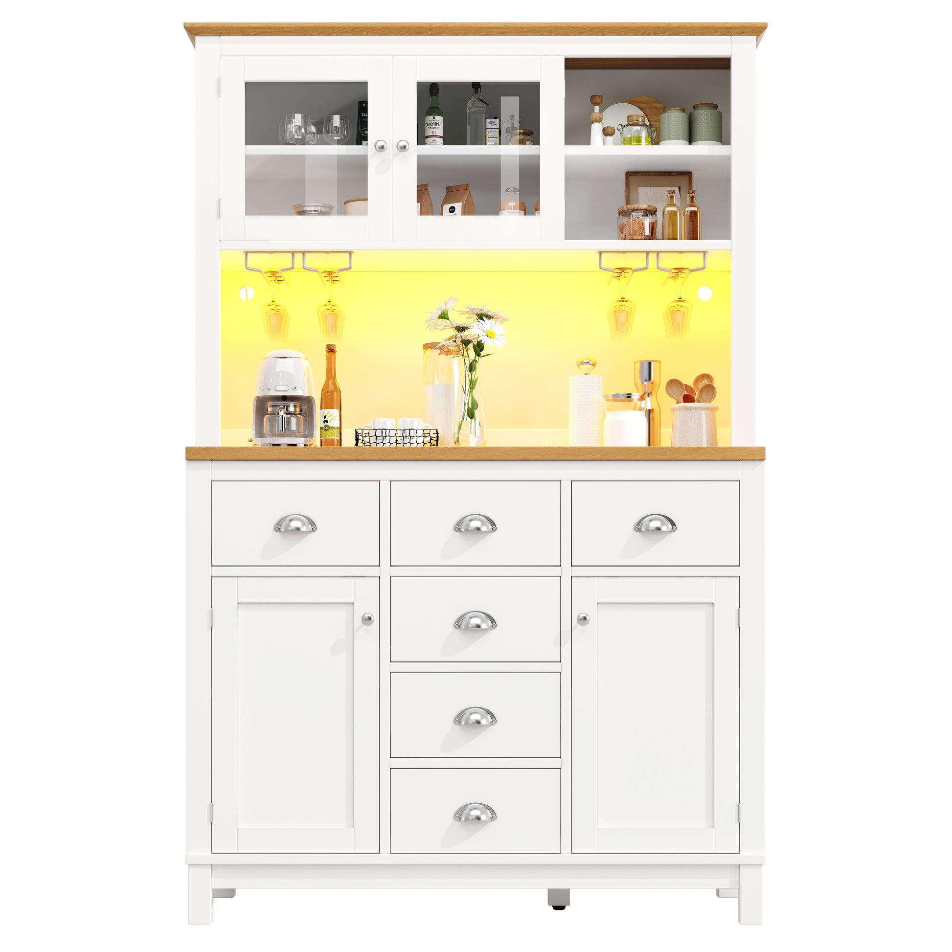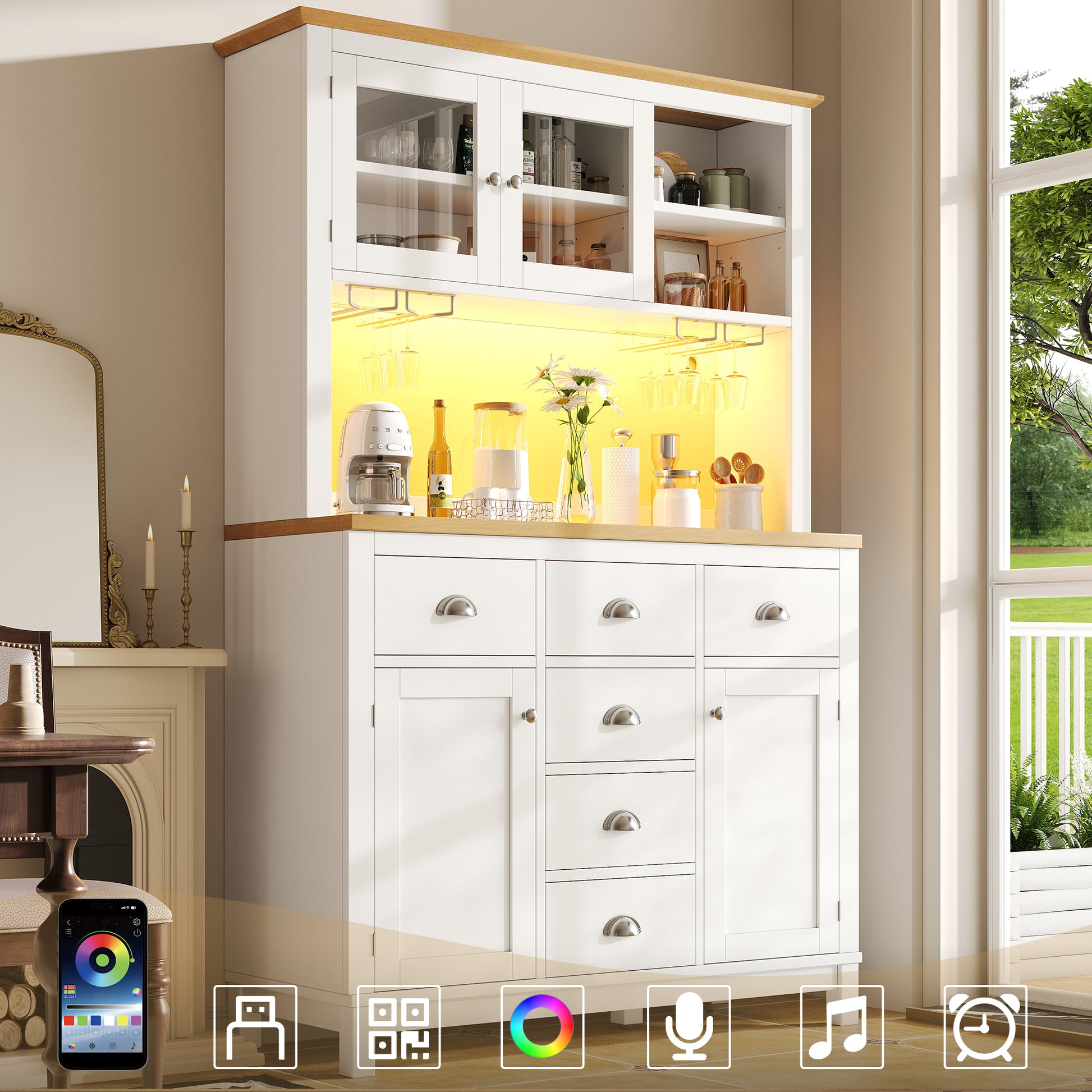 Sideboard Buffet Cabinet with 4 Doors and LED Light Strip, Green and White