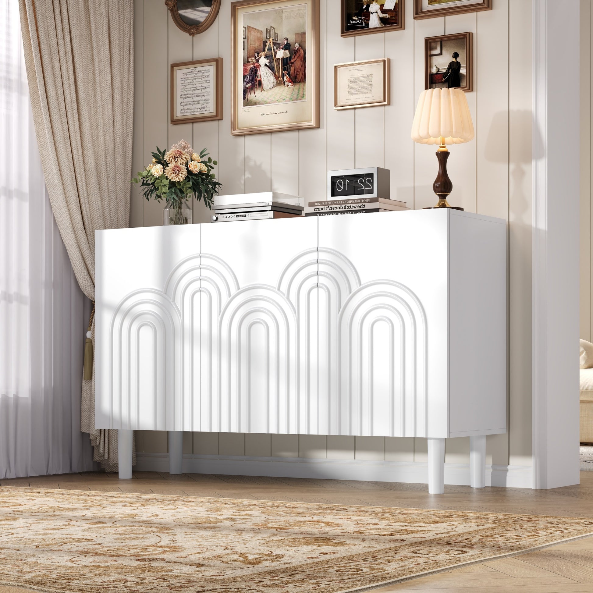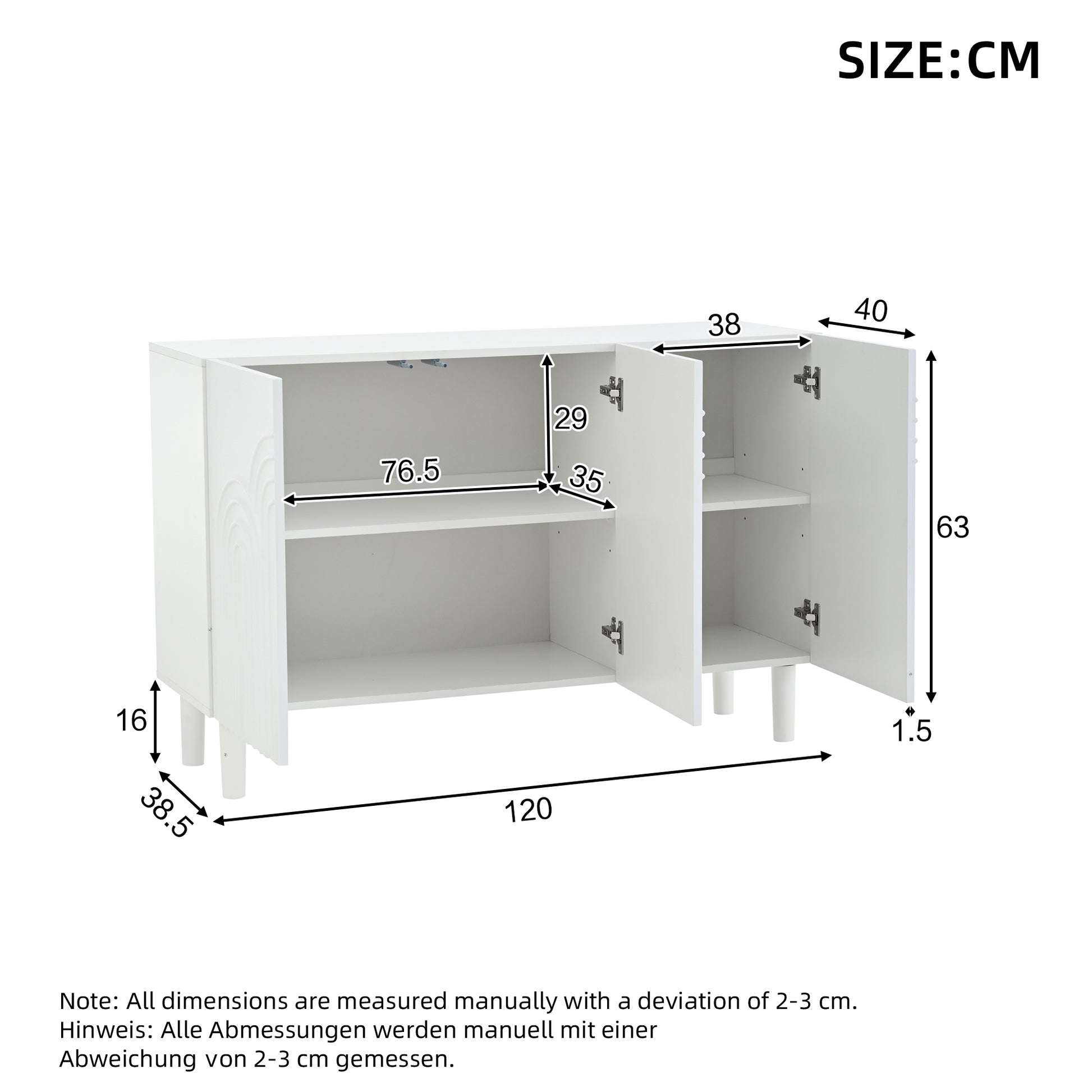 Sideboard Cabinet, 3 Doors Large Storage Adjustable Divider, White MDF