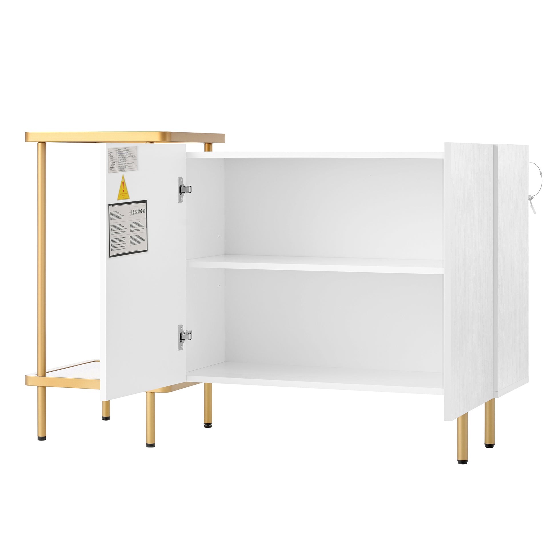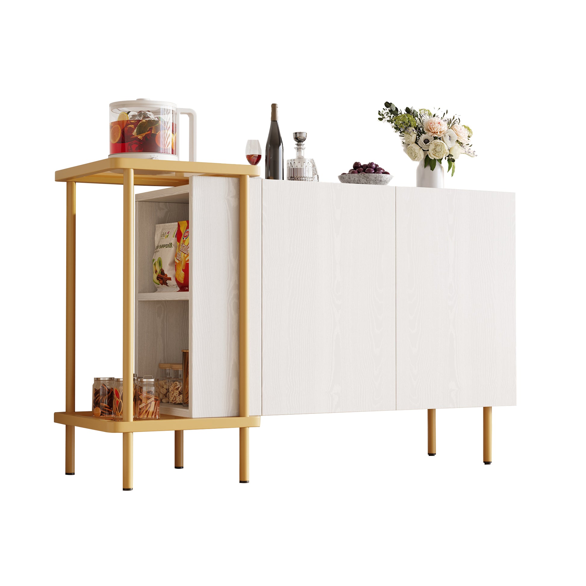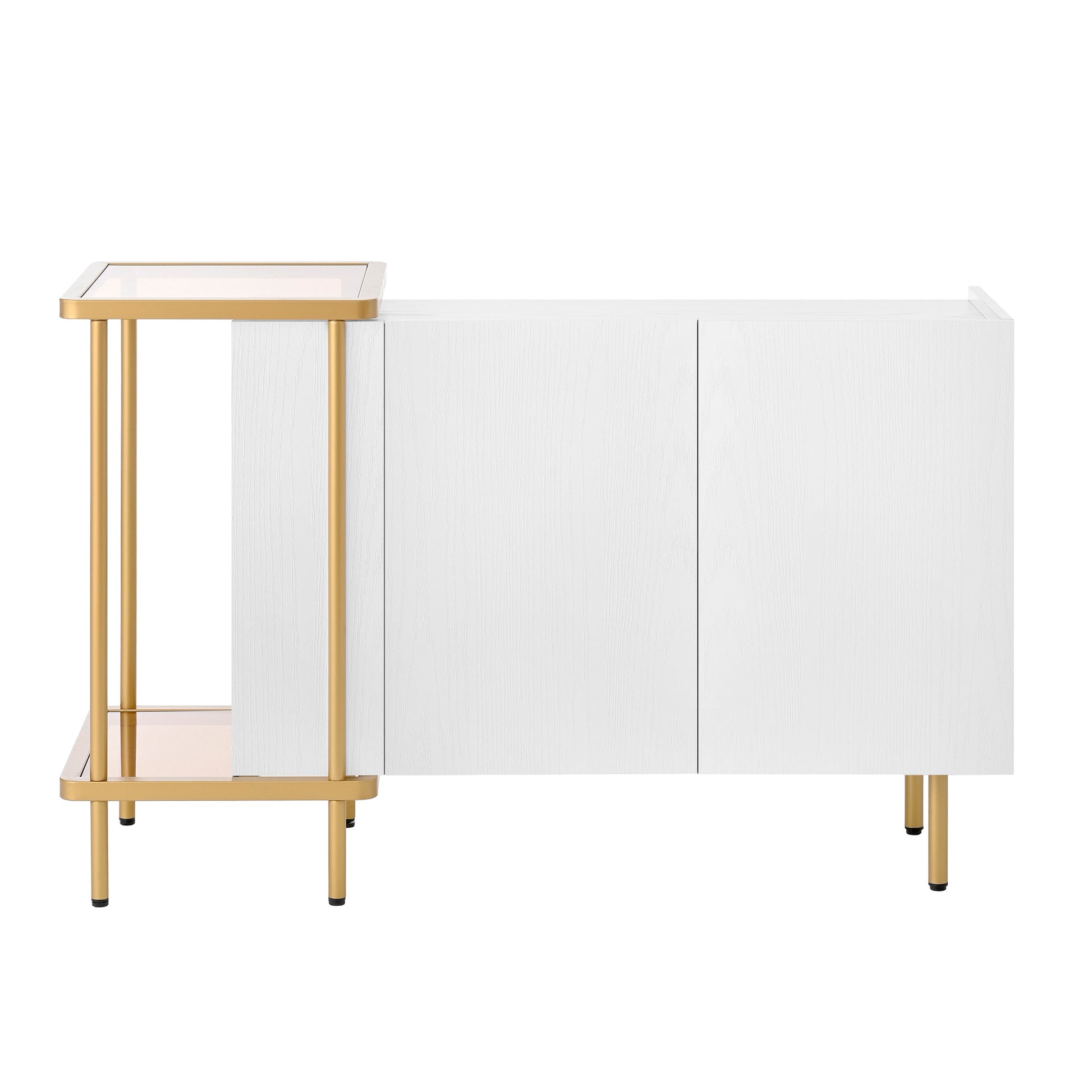 Sideboard Cabinet & Coffee Table, 2 Doors 2 Open Compartments, Metal/Glass White, 120 x 40 x 77.5 cm