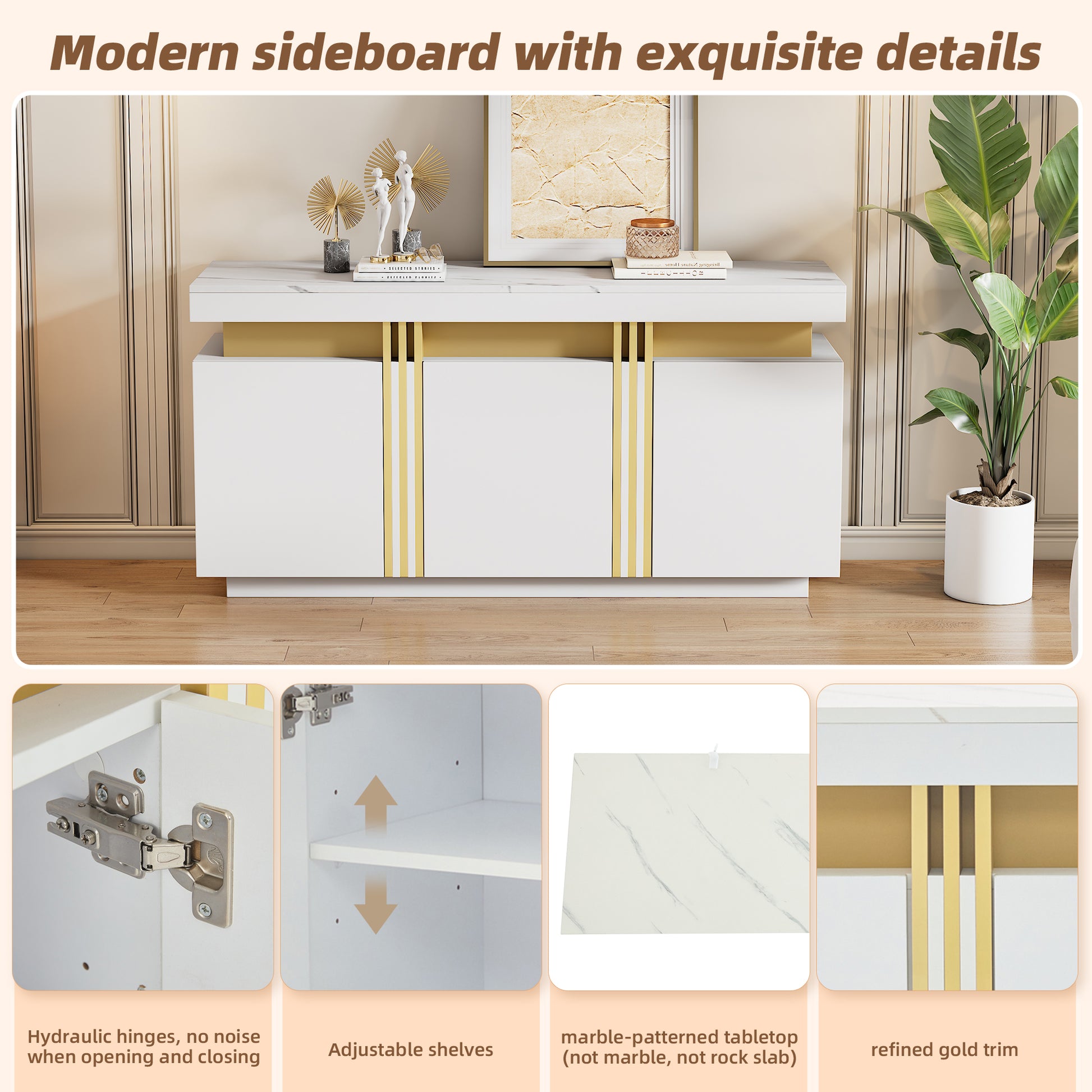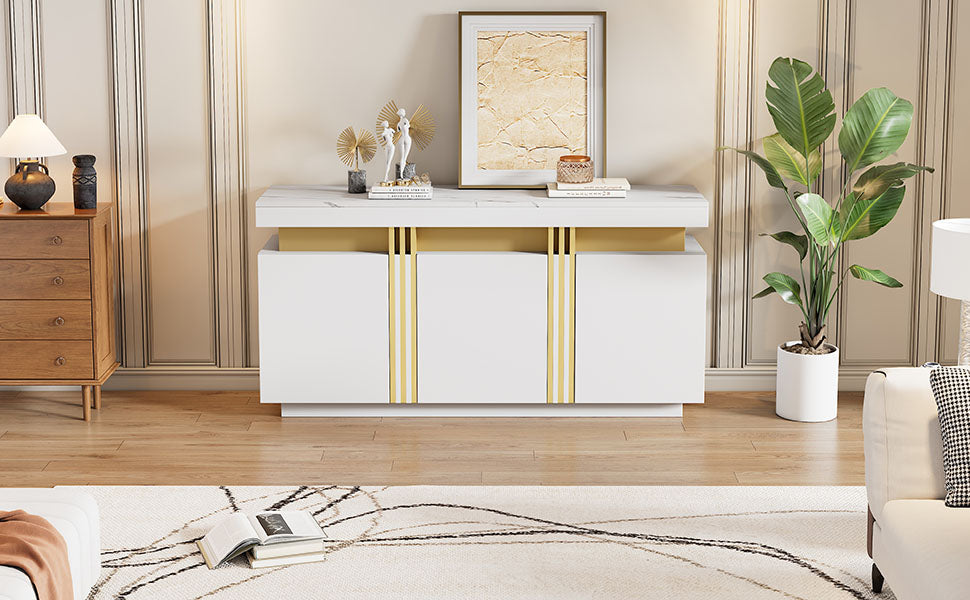 Sideboard Display, 3-Door Dining Room Cabinet with Adjustable Dividers, Modern White