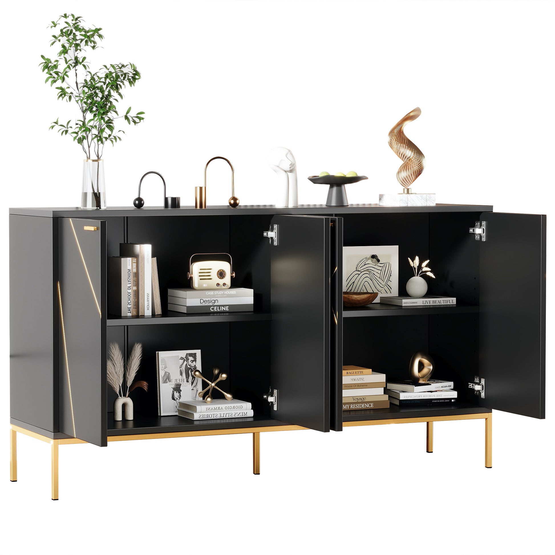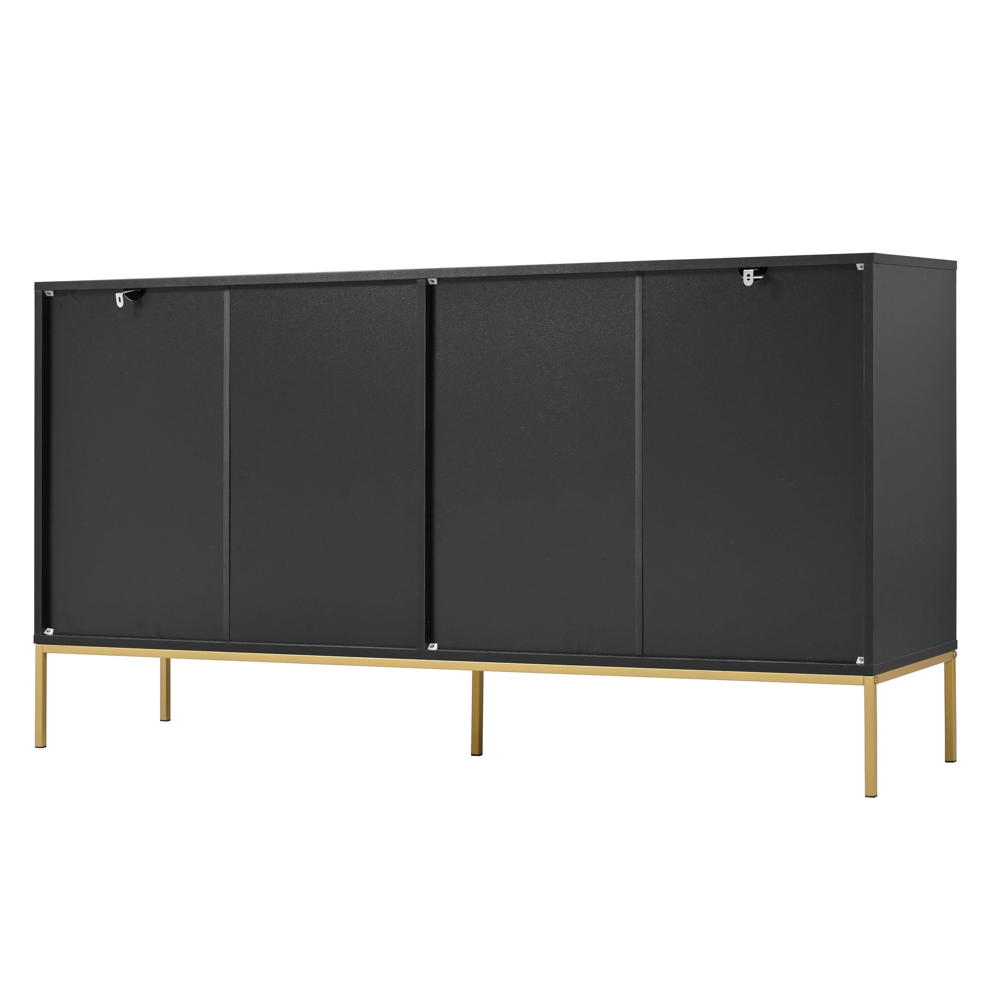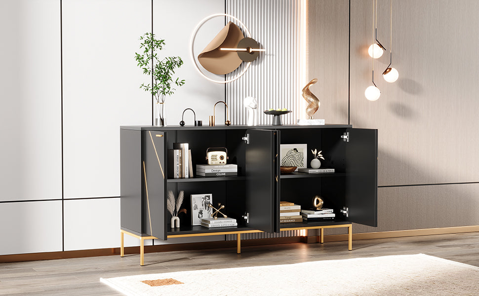 Sideboard four doors metal feet TV cabinet wardrobe linear design black and gold