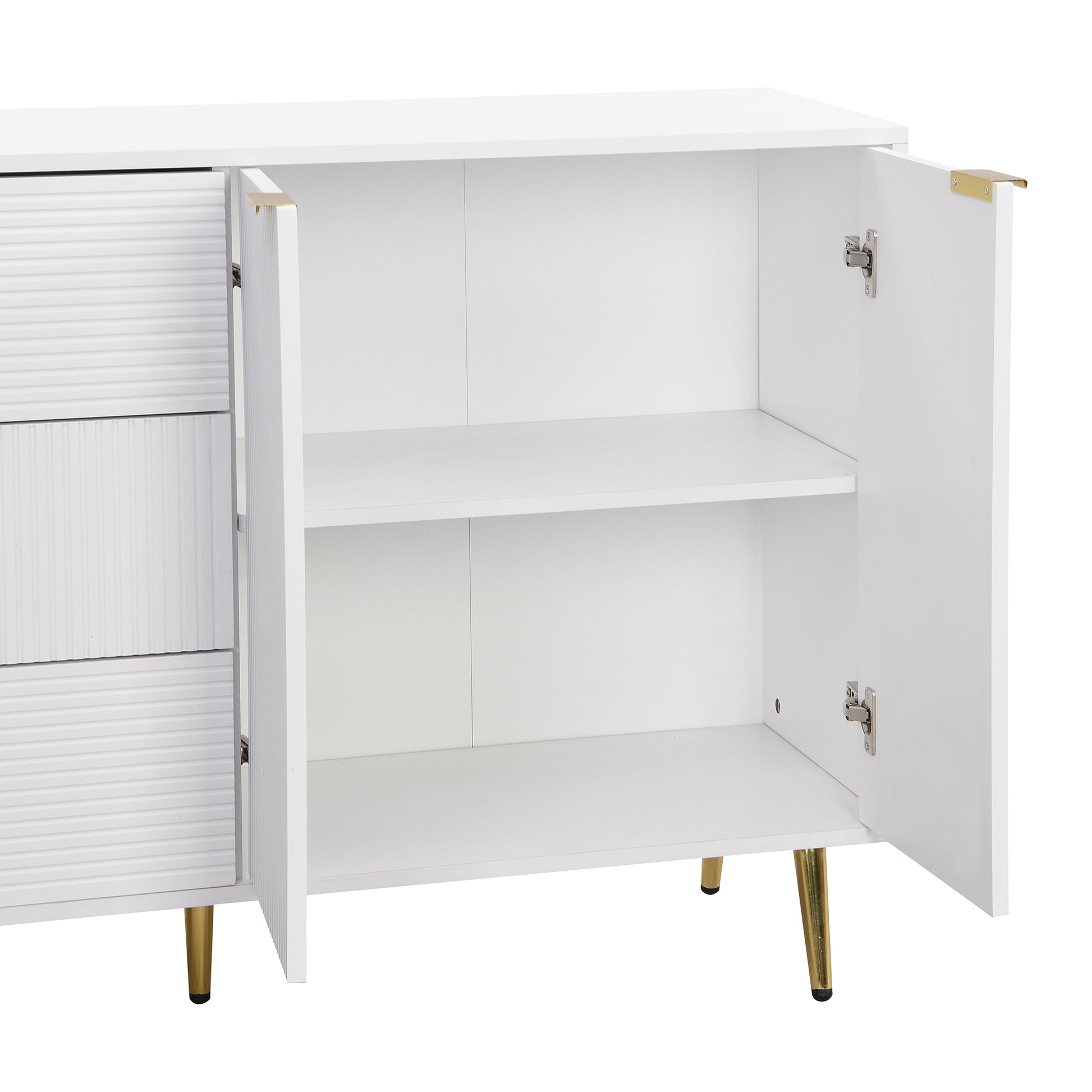 Sideboard, Living Room Cabinet with Doors & Drawers, Interior Shelves, Golden Handles & Legs