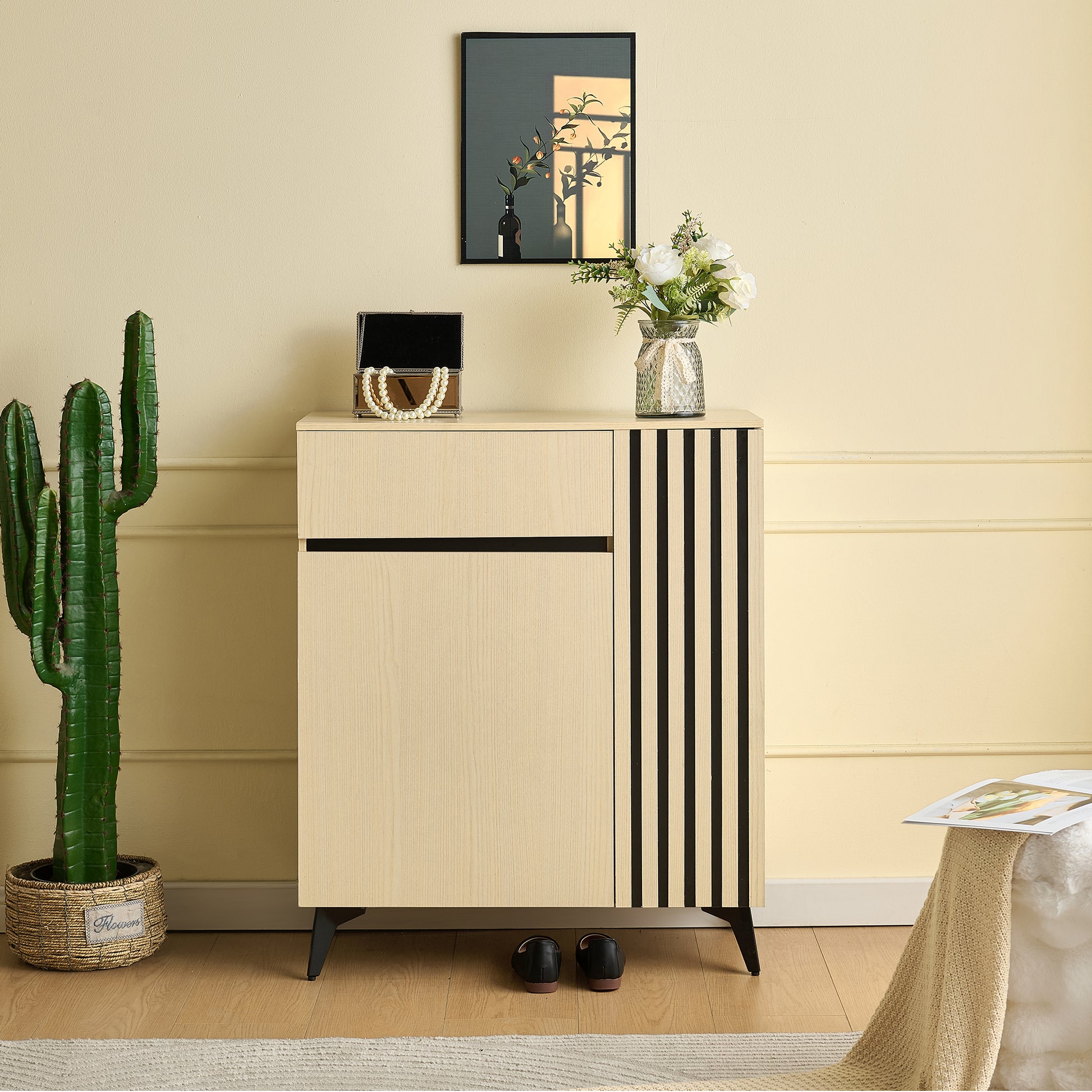 Sideboard/Shoe Cabinet with 2 Doors, 1 Drawer, Adjustable Shelves, Light Wood MDF