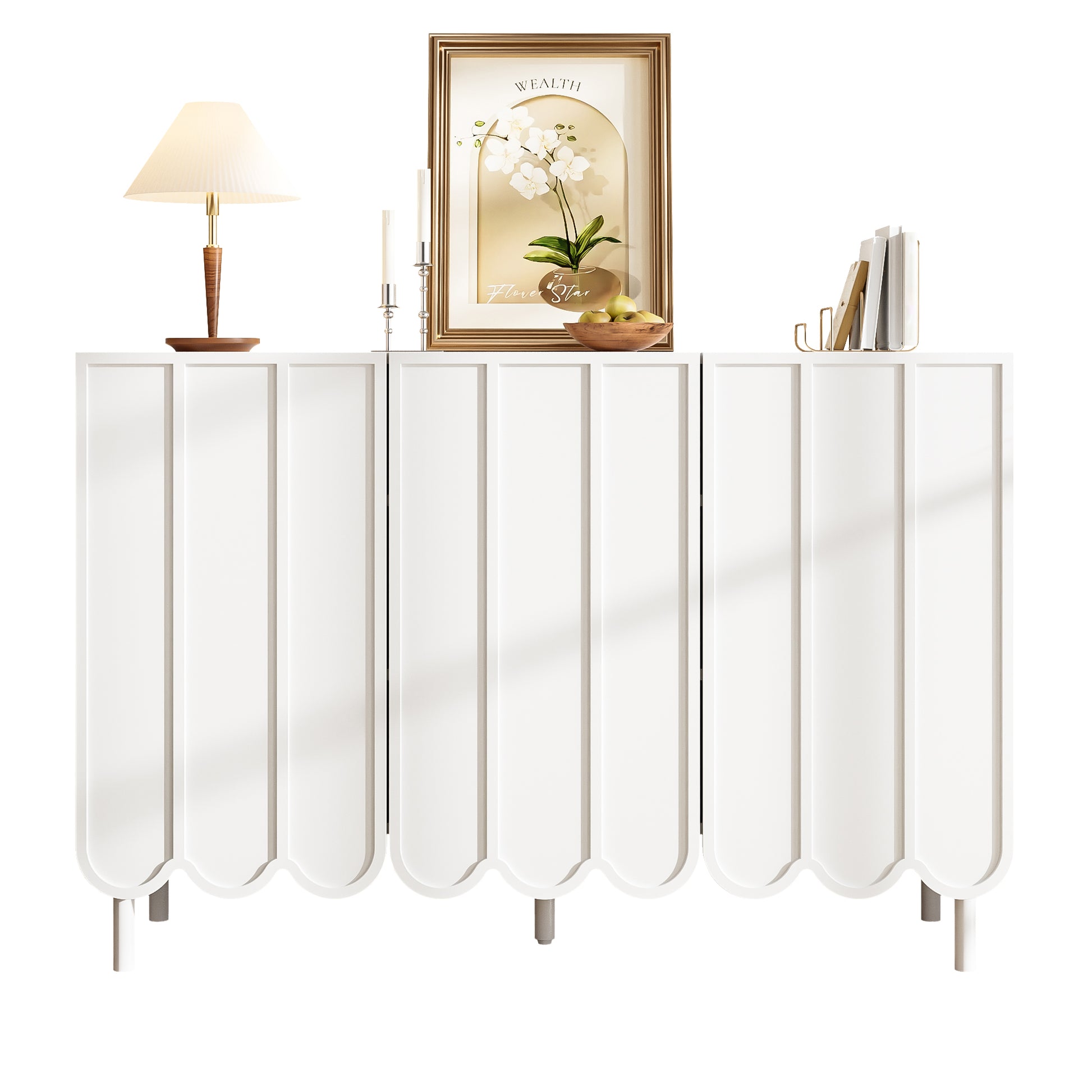 Sideboard, Wave Doors, Handleless, Adjustable Shelves, White