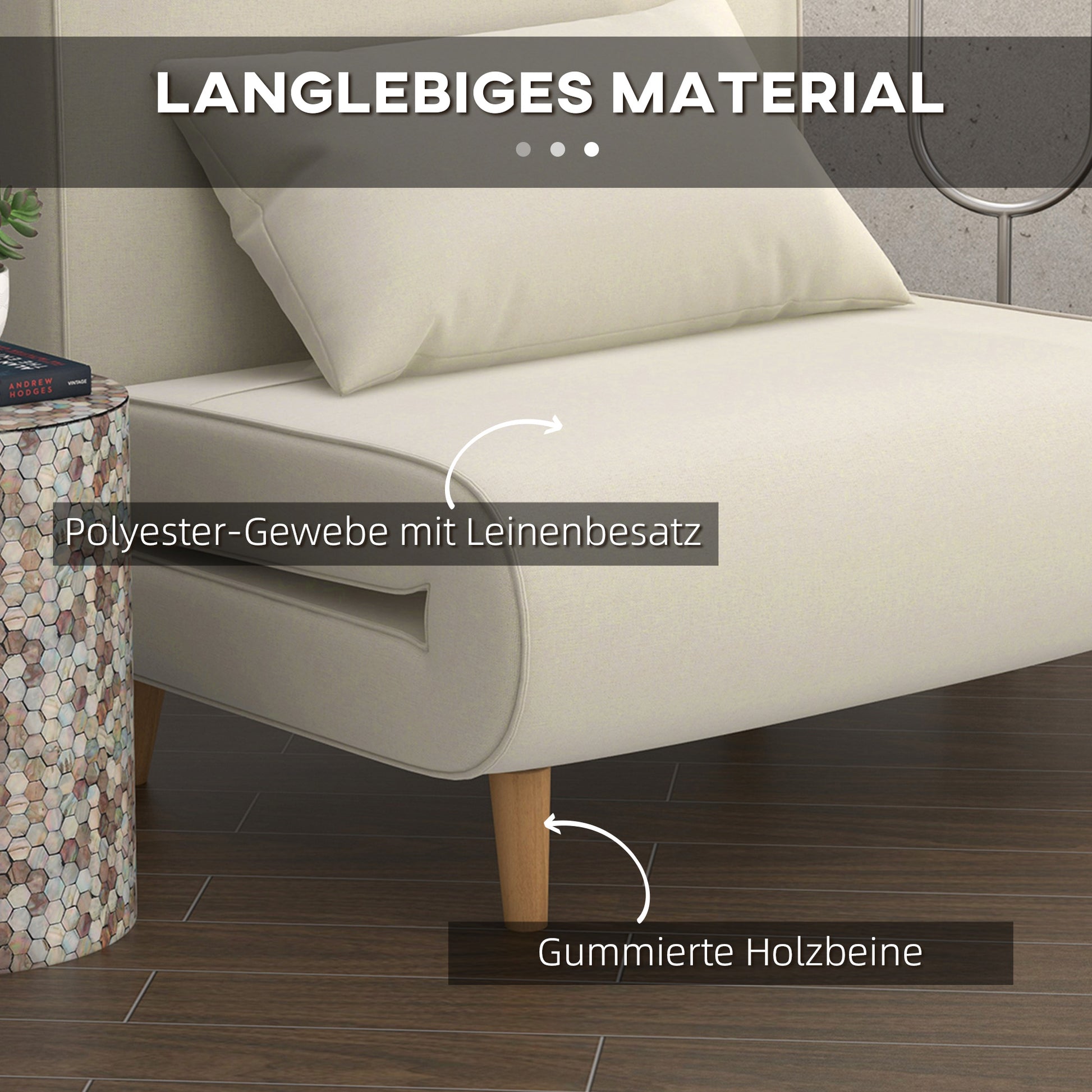 The softly padded seat and extra cushion provide exceptional comfort and relaxation. The linen-polyester fabric ensures easy care and superior comfort, while the fir wood legs provide stability and durability.