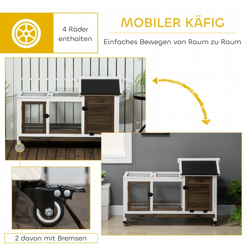 Small Animal Hutch for Dwarf Rabbits, Guinea Pigs, with Wheels, Coffee