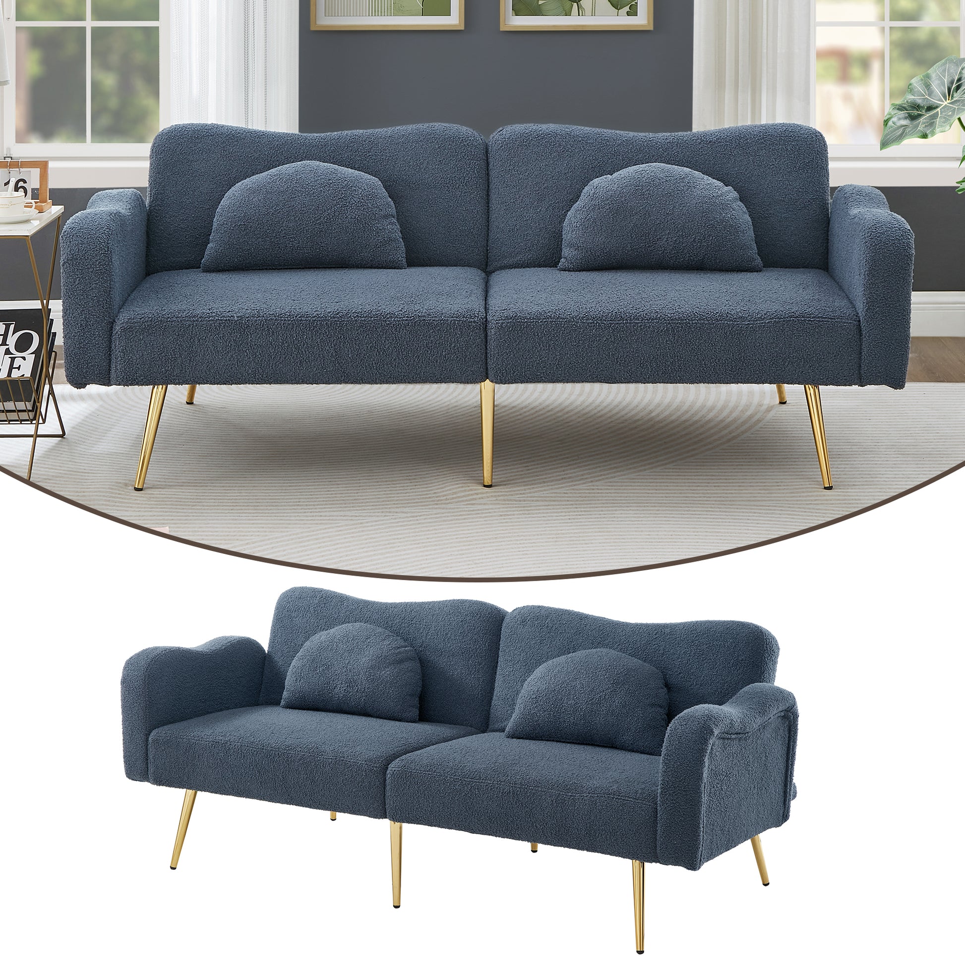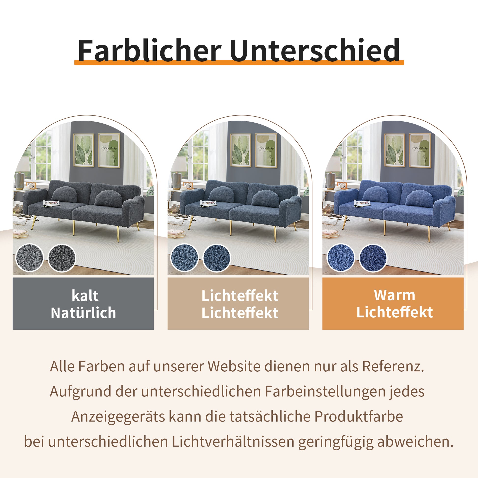 Sofa Bed, 2-Seater with Adjustable Backrest, Gold-Plated Metal Feet