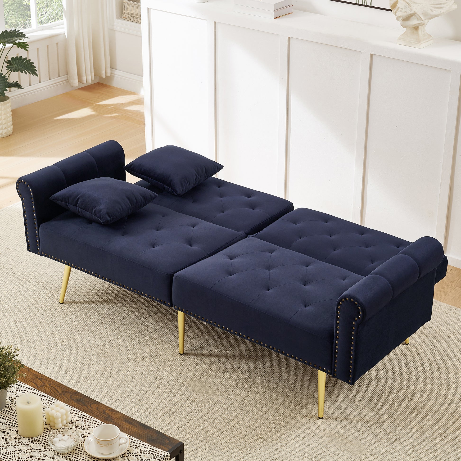 Sofa Bed, Modern 2-Seater, 3-Level Adjustable Backrest, Velvet