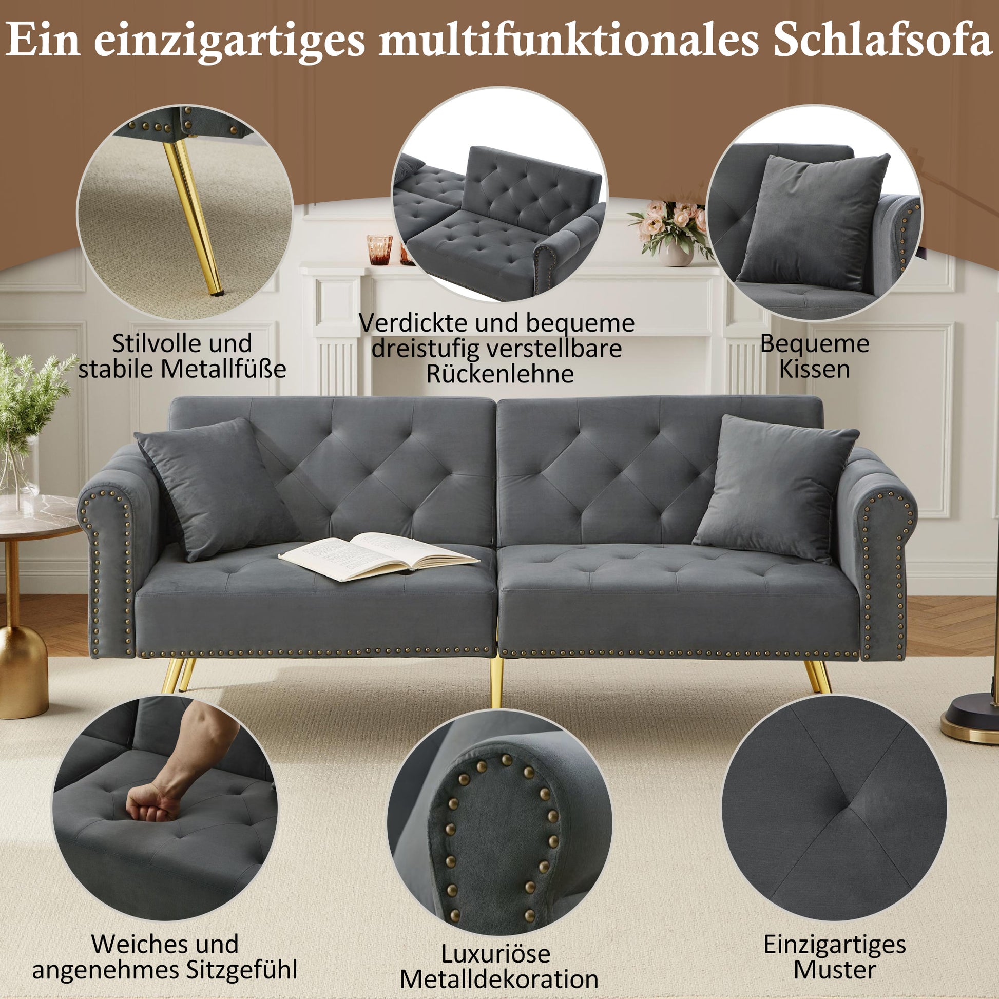Whether in a small apartment, a loft living room, or a guest room, this sofa transforms into a true space saver: a stylish, luxurious sofa by day and a comfortable sleeping area at night. With the included, detailed instructions, assembly takes just a few minutes—and you can enjoy your high-quality home!