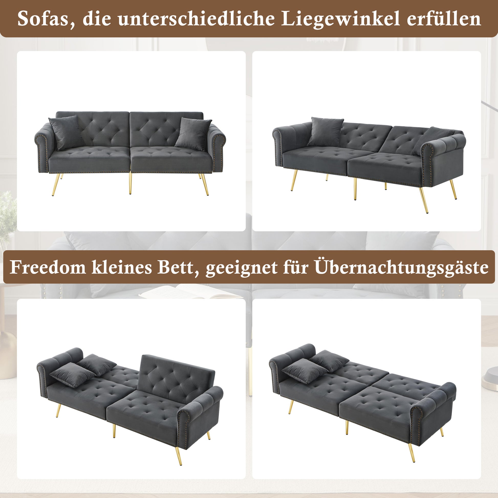 Sofa Bed, Modern 2-Seater with 3-Level Adjustable Backrest, Velvet