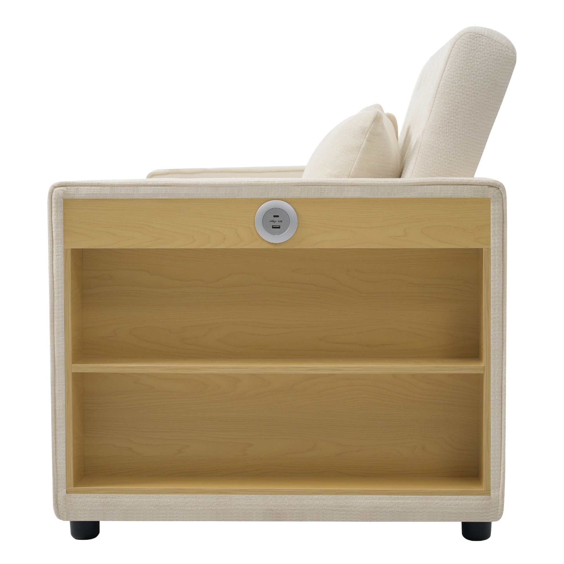 Sofa Bed, Modern Folding with Storage, Cup Holder, USB, Beige