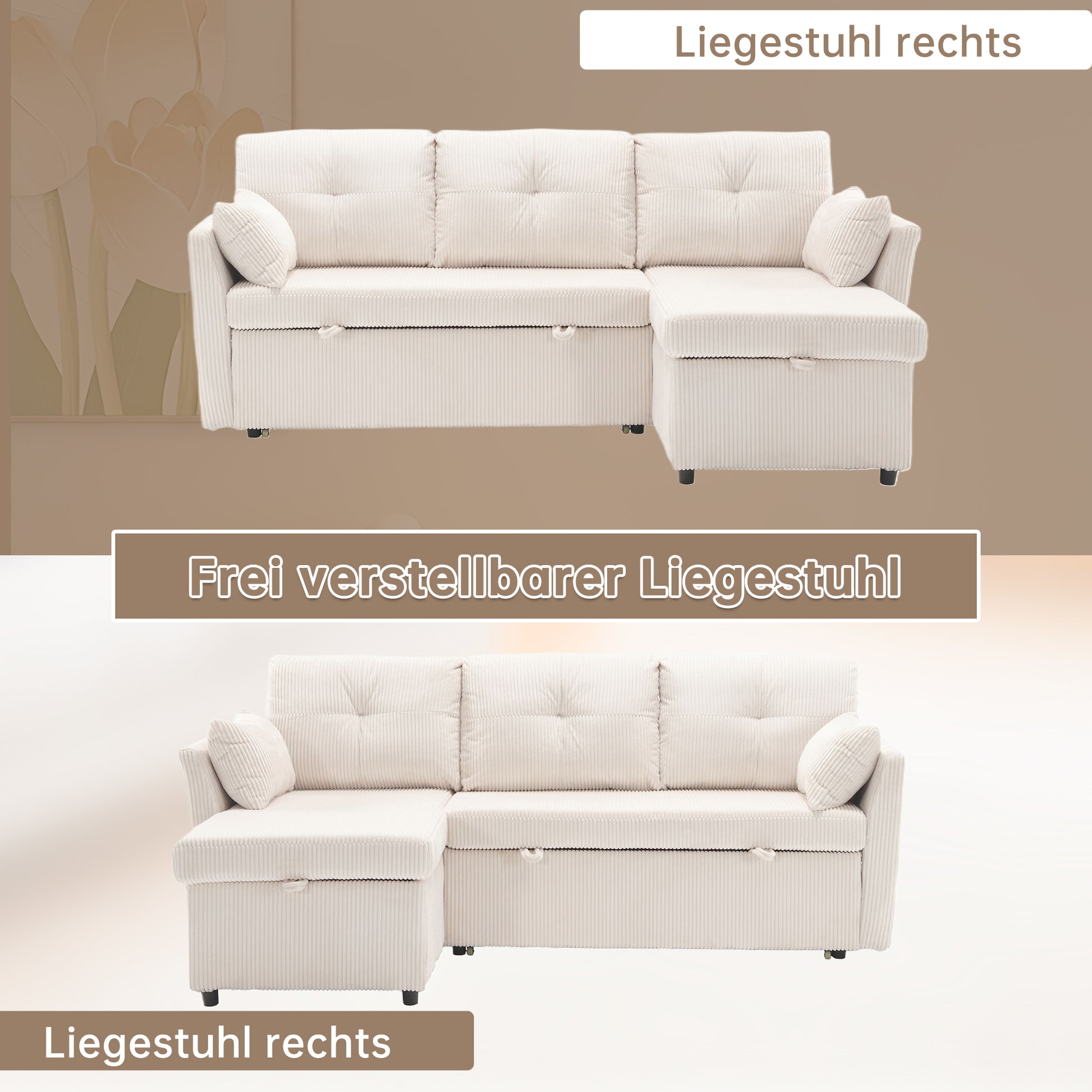 Sofa Bed, Multi-functional with Storage & Pull-out, Chaise Lounge Interchangeable, Modular L-Shaped Sectional
