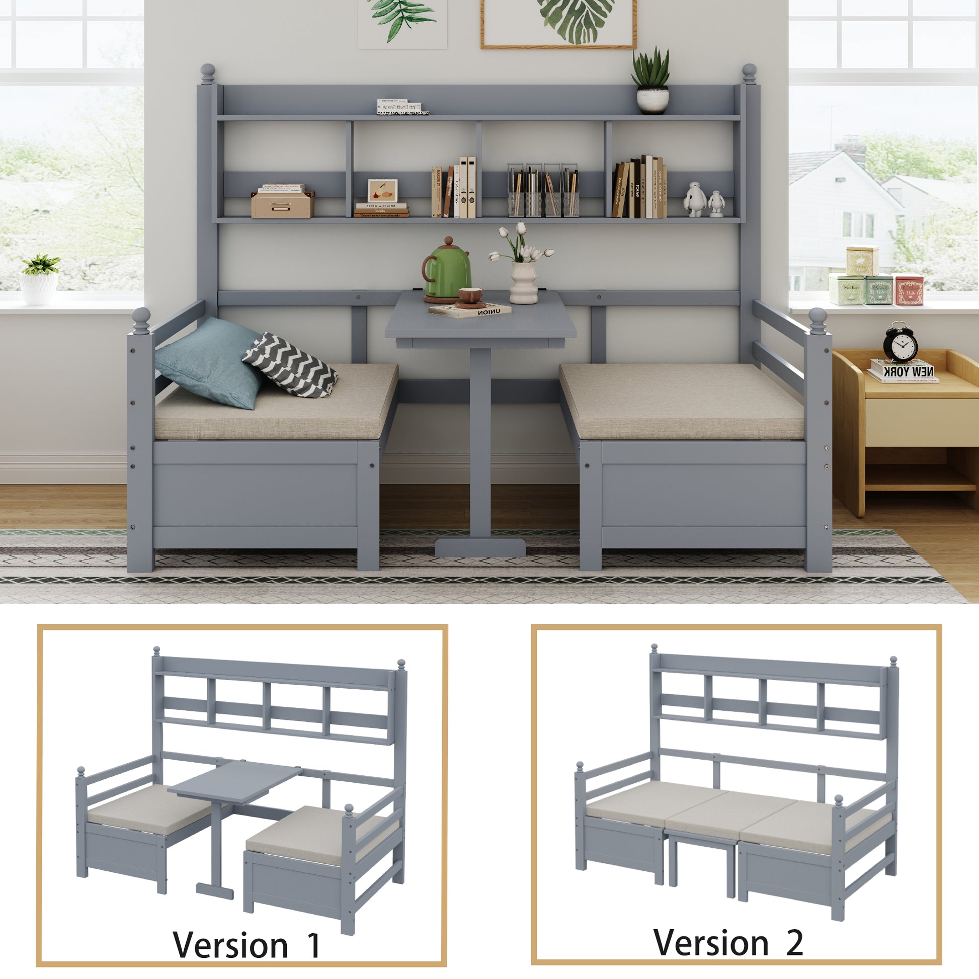 Sofa Bed, Multifunctional 2-in-1 Bed & Desk with Bookshelf, Solid Wood Gray