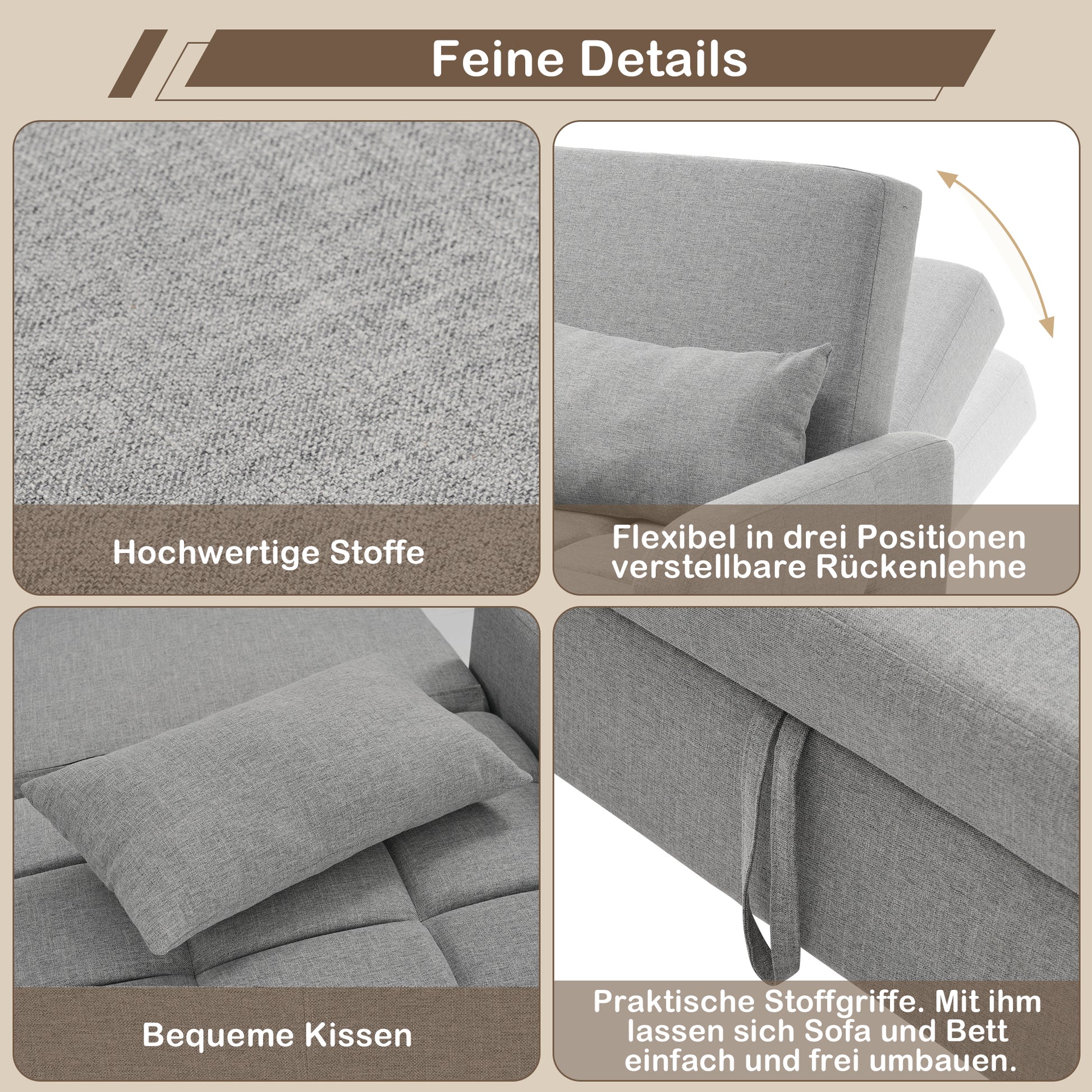 Adjustable backrest: The sofa's backrest can be adjusted to three different angles, meeting all seating and reclining needs for even more comfortable use.