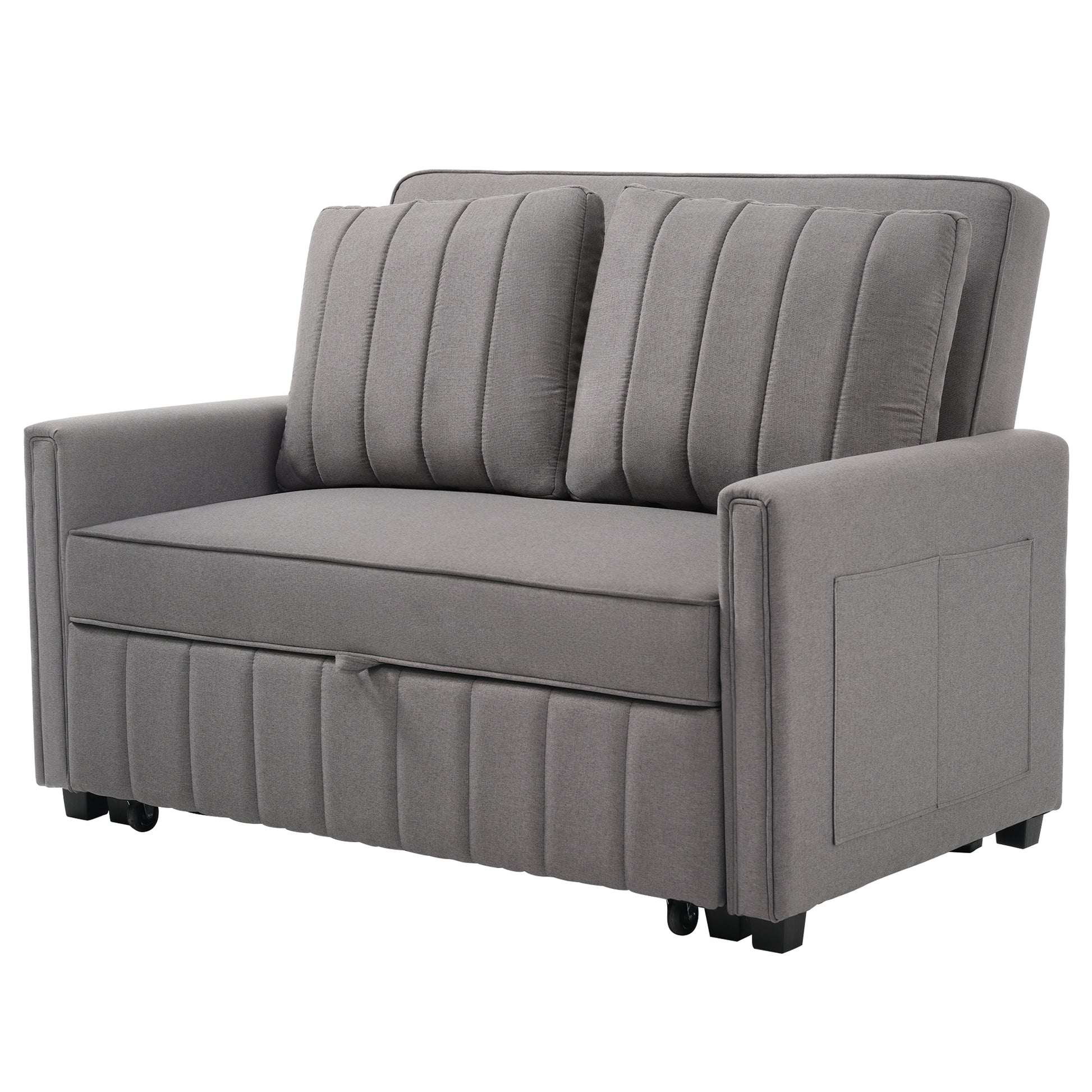 A sturdy wood and iron frame provides a solid foundation, ensuring stability and durability for long-term use. By pulling the rails, the sofa can be quickly converted into a bed, providing a relaxing sleeping experience. The compact design allows the sofa to be folded into a space-saving sofa, making it ideal for small apartments, dorms, or limited spaces.