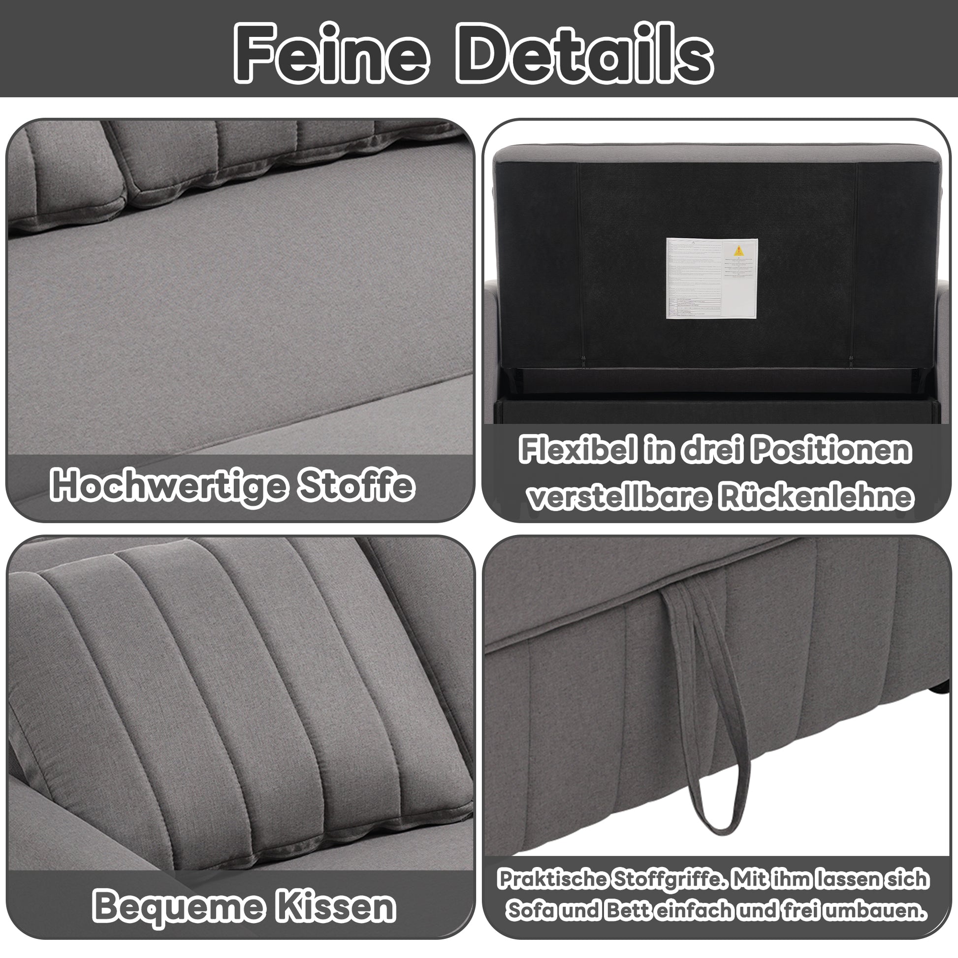 This sofa bed also features two practical cushions that can be used both as sofa cushions and as comfortable headrests when in bed. The sofa's backrest offers three adjustable angles that can be adjusted to suit individual needs, providing a versatile sitting and lying experience. The product comes with detailed instructions for easy assembly, so even first-time users can manage it without any hassle.