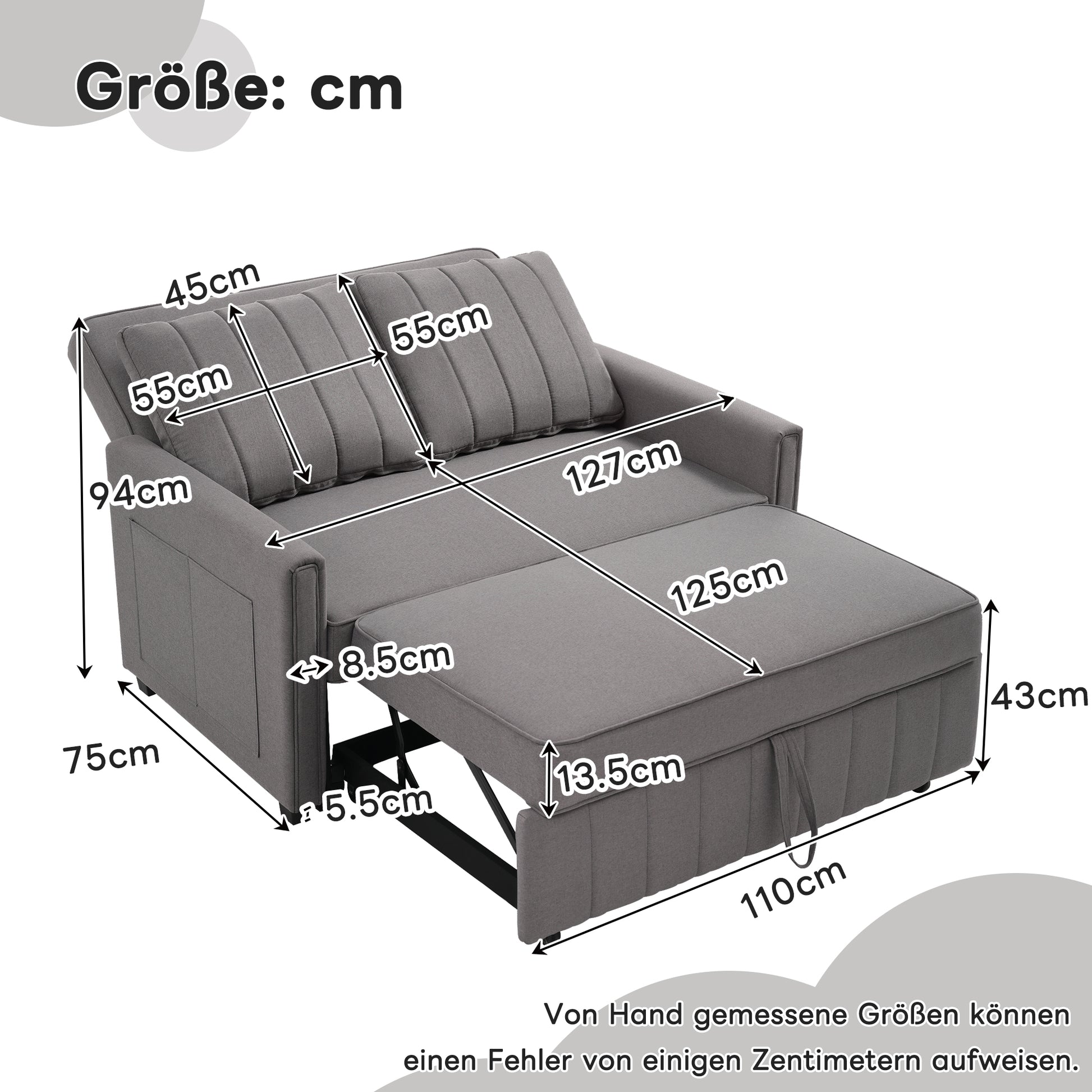 This multifunctional folding sofa bed is your ideal companion for your home. It can be used as a comfortable sofa or quickly converted into a large bed, providing a comfortable sleeping area of 180 x 110 cm – perfect for overnight guests or for use in small spaces. The high-quality cotton and linen fabric is natural, fine, and durable, offering good breathability and ensuring comfort and longevity. The high-density foam inside the sofa not only provides strong support but also a particularly soft seating experience.