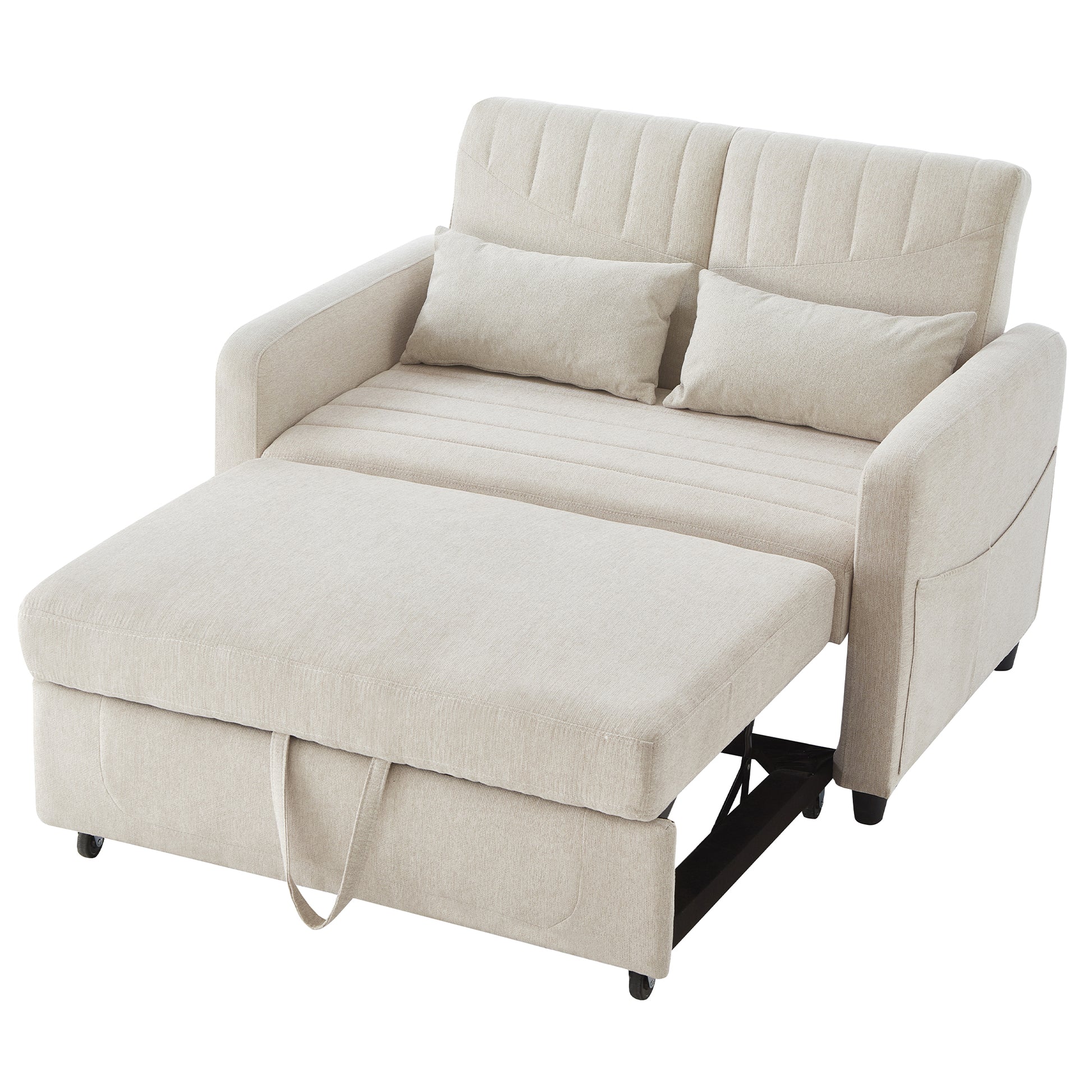 Sofa Bed, Two-seater Folding Extendable with Adjustable Backrest, Cotton Linen Fabric