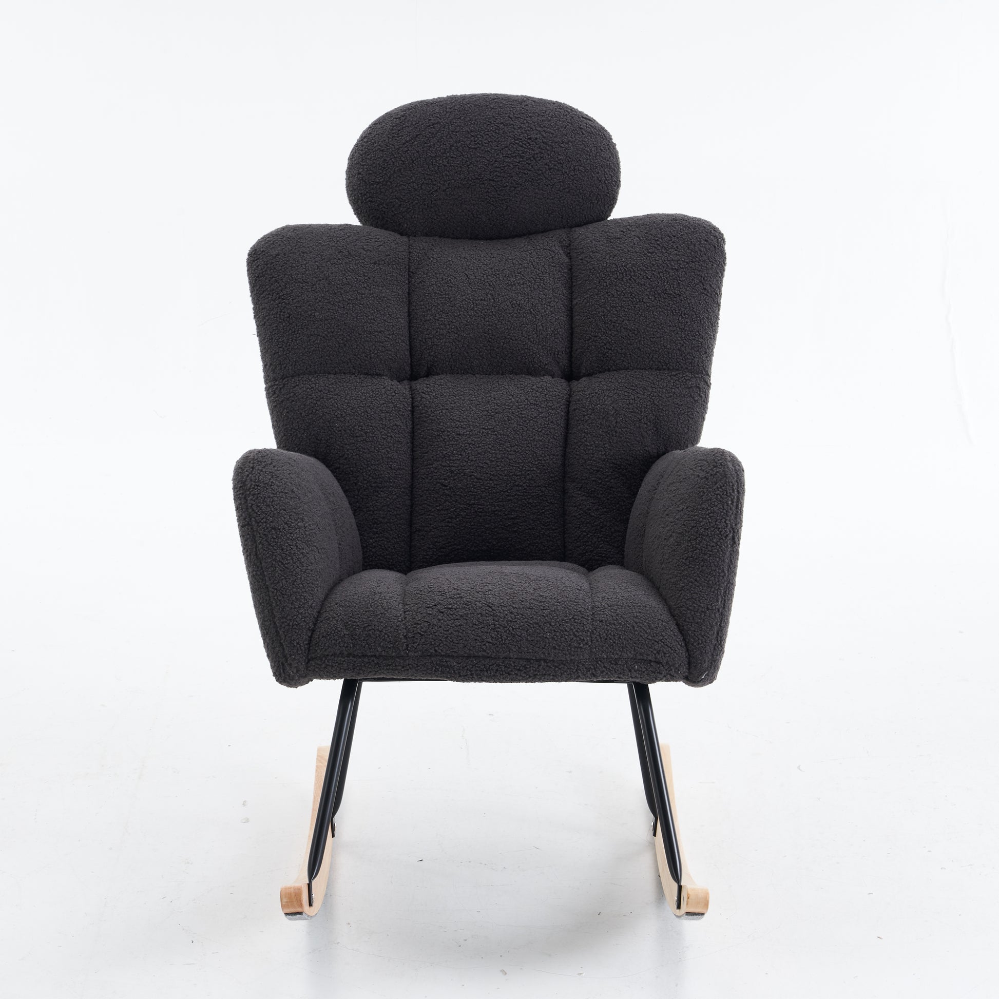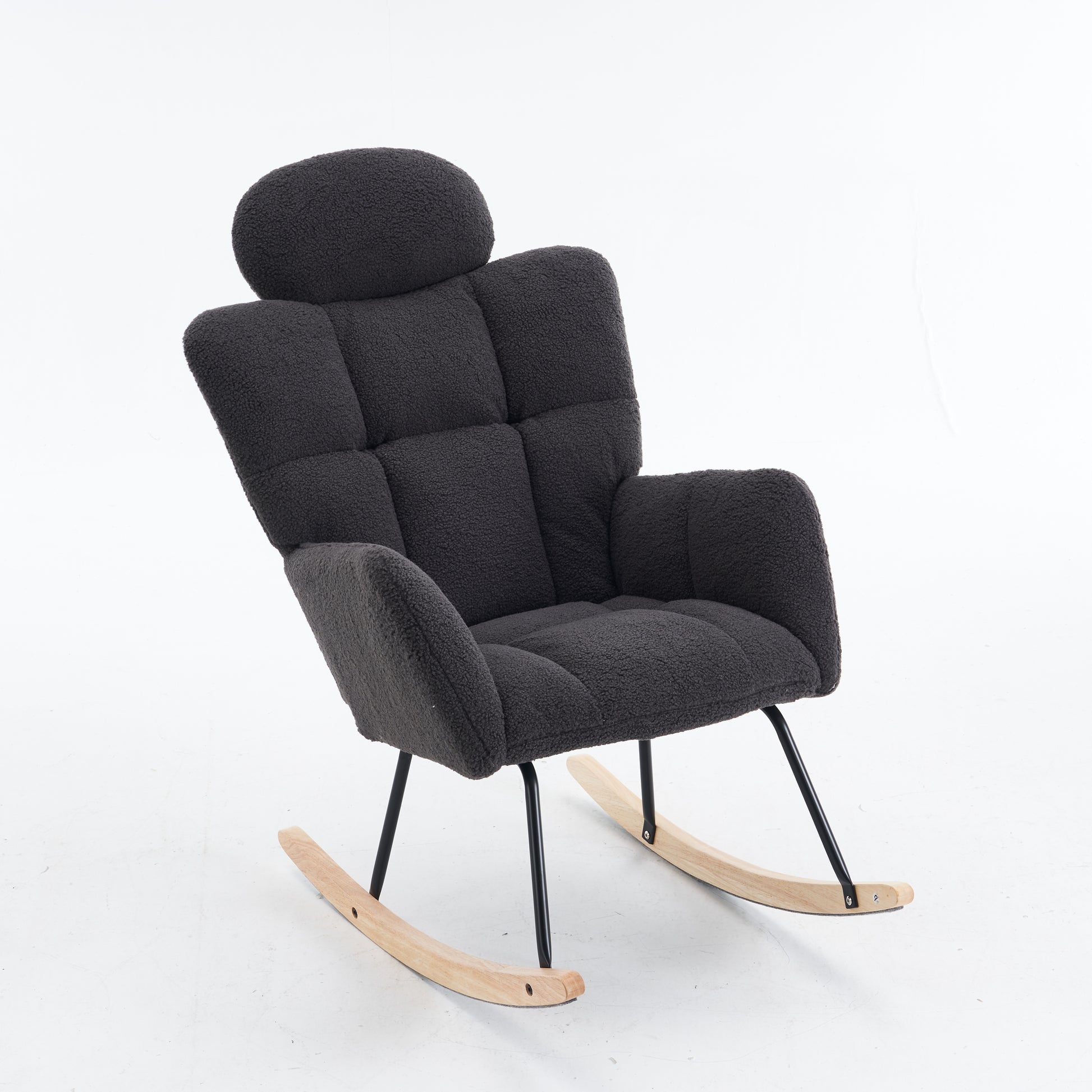 Soft Teddy Fabric Rocking Chair with Padded Seat and Headrest, Dark Grey