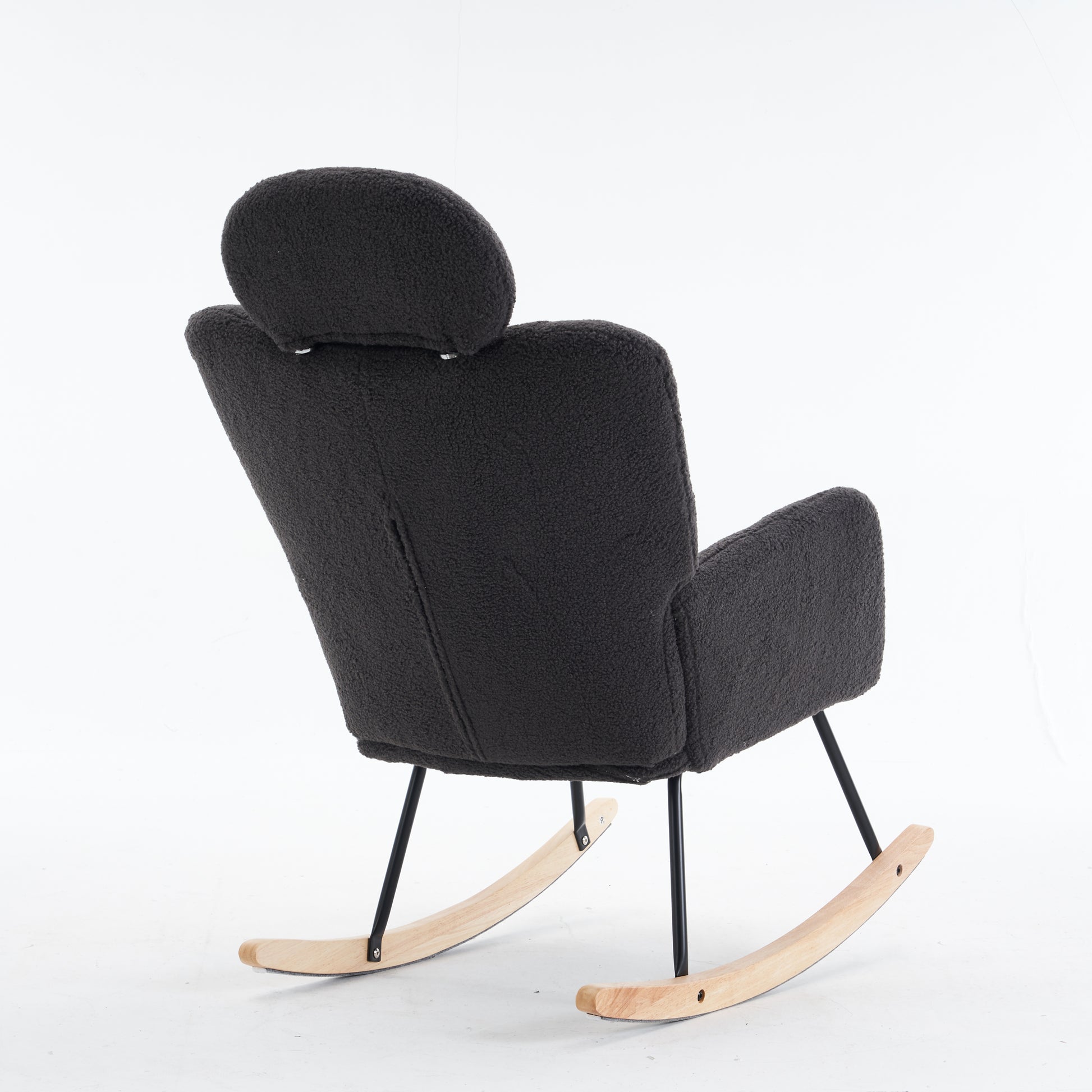 1.Product Pomposition: Soft Teddy Material+Foam Filled+Wooden Frame+Black Painting Metal Base+Wooden Rocking Legs+Upholstered+Floor Protection And Headrest;