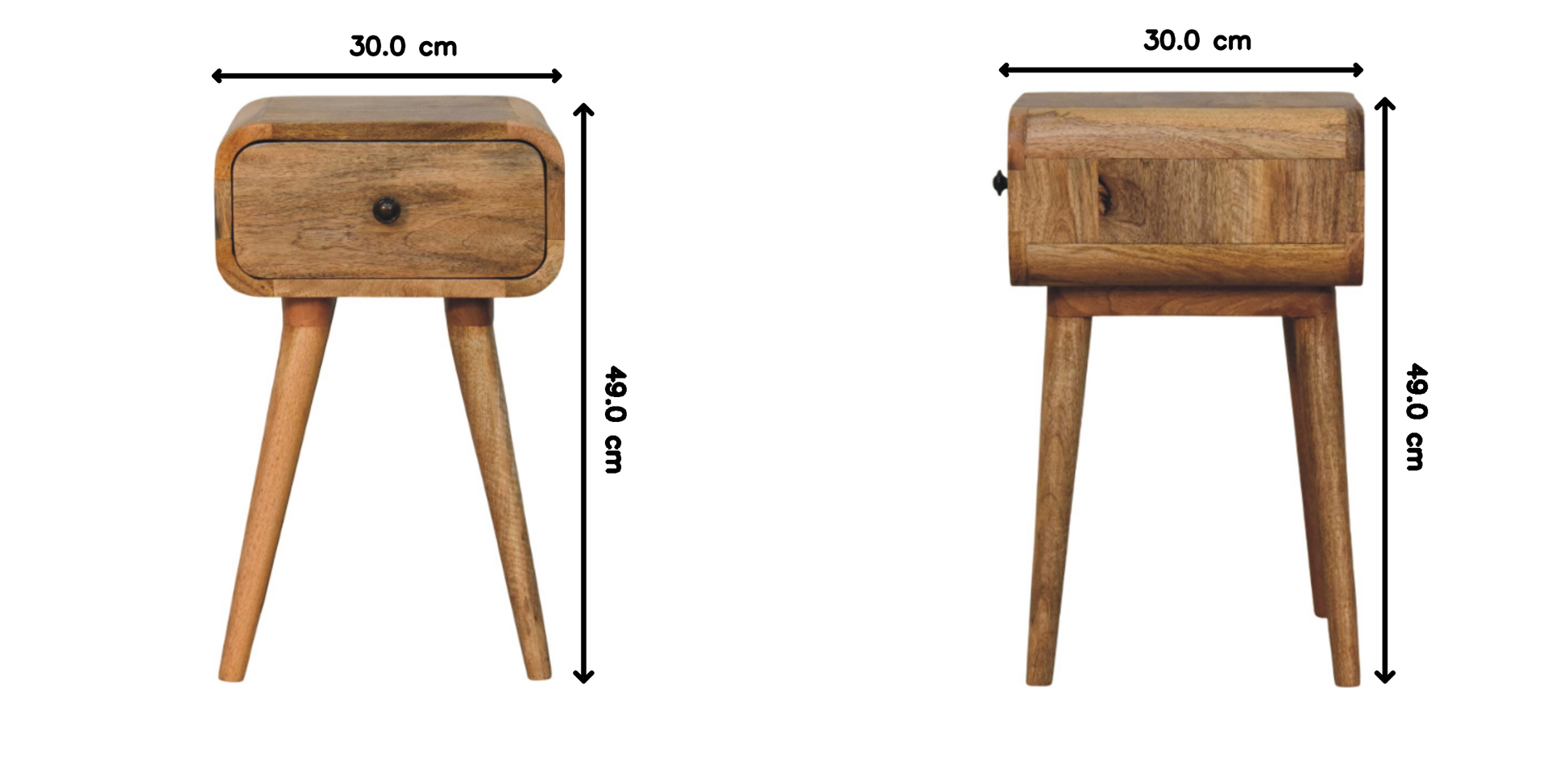 It features one spacious drawer to discreetly tuck away remotes, chargers, and other essentials. A stylish and versatile design allows it to fit in anywhere, from the bedroom to the living room. Characteristic Nordic legs provide a slim, minimalist support structure that keeps the visual focus on the form above.