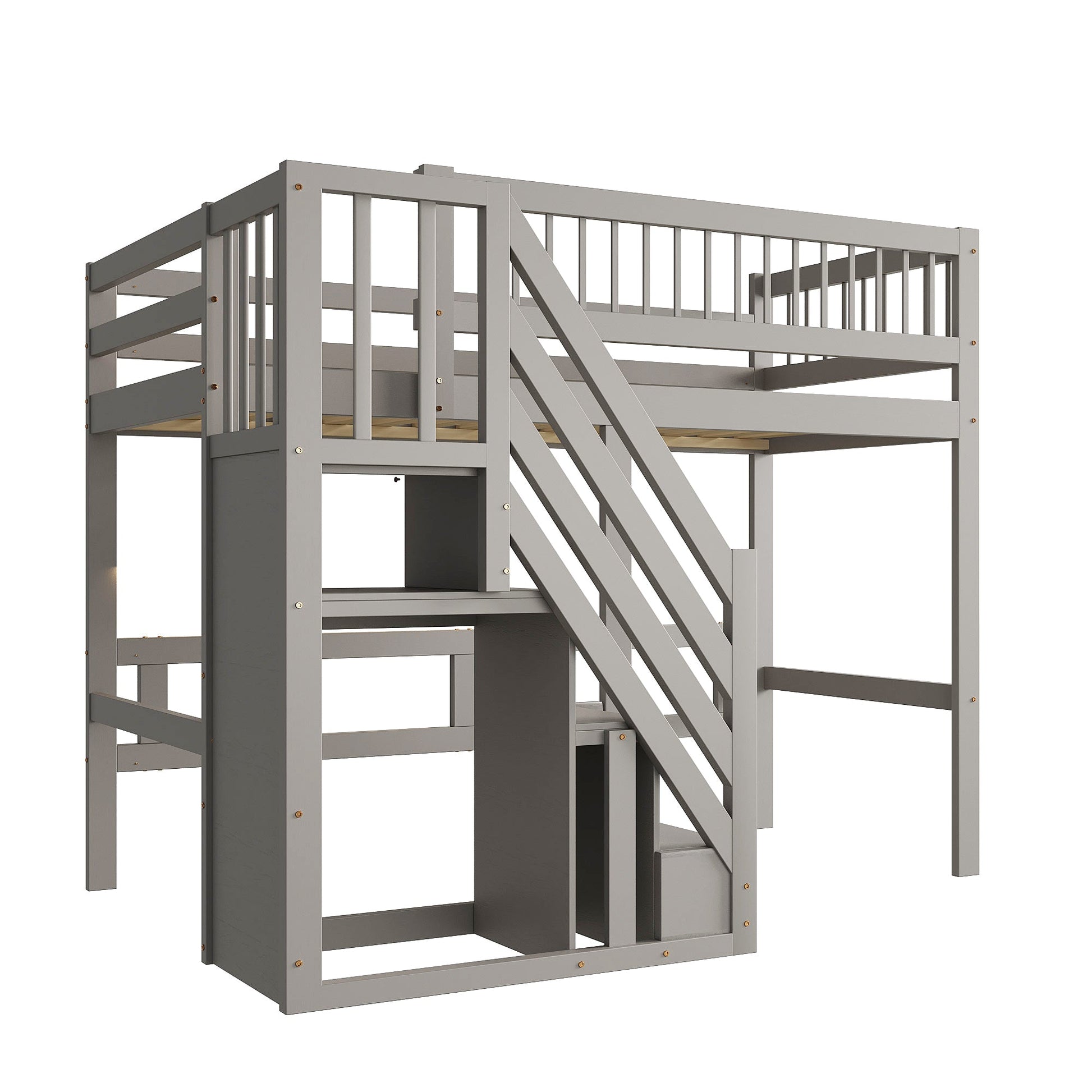 Solid wood bed 90*200 with stairs, storage cabinet, single bed, high version, grey