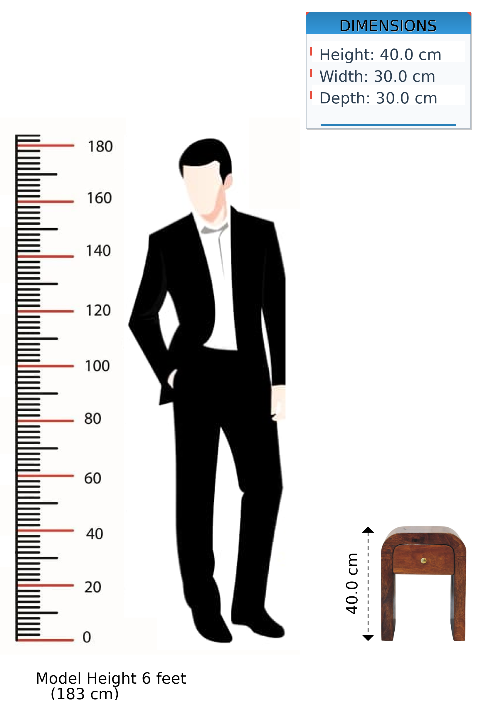 Solid Wood Mini Darcy Nightstand, Curved Edges 1 Drawer, Dark Brown