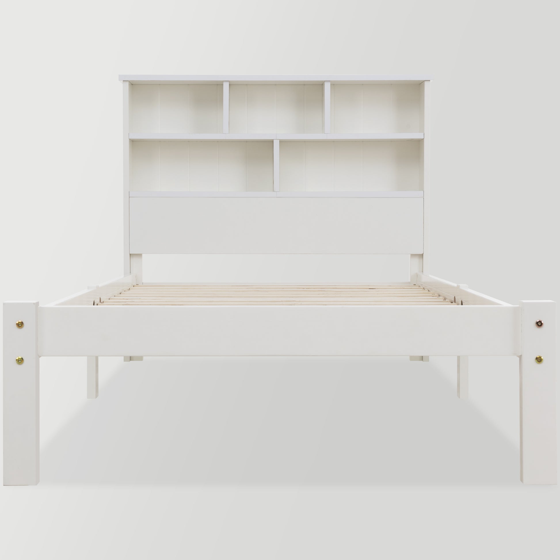 Solid Wood Single Bed with Drawers & Slatted Frame, Bookcase, White