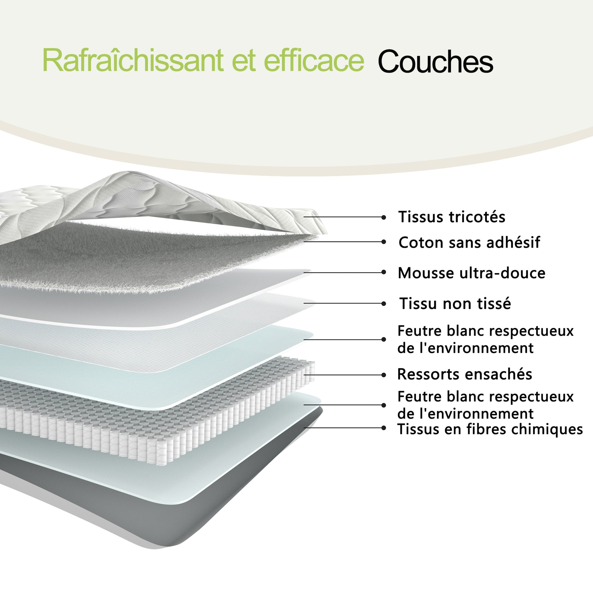 This easy-care mattress cover is suitable for beds, sofa beds, and innerspring mattresses measuring 90 x 190 centimeters. Thanks to its elasticity, you'll enjoy a healthy and comfortable sleep! It adapts to all sleeping positions (back, stomach, side) and quickly returns to its original shape after use. Its ergonomic design is suitable for users of all ages, while clean, safe materials make it the perfect choice for home use!