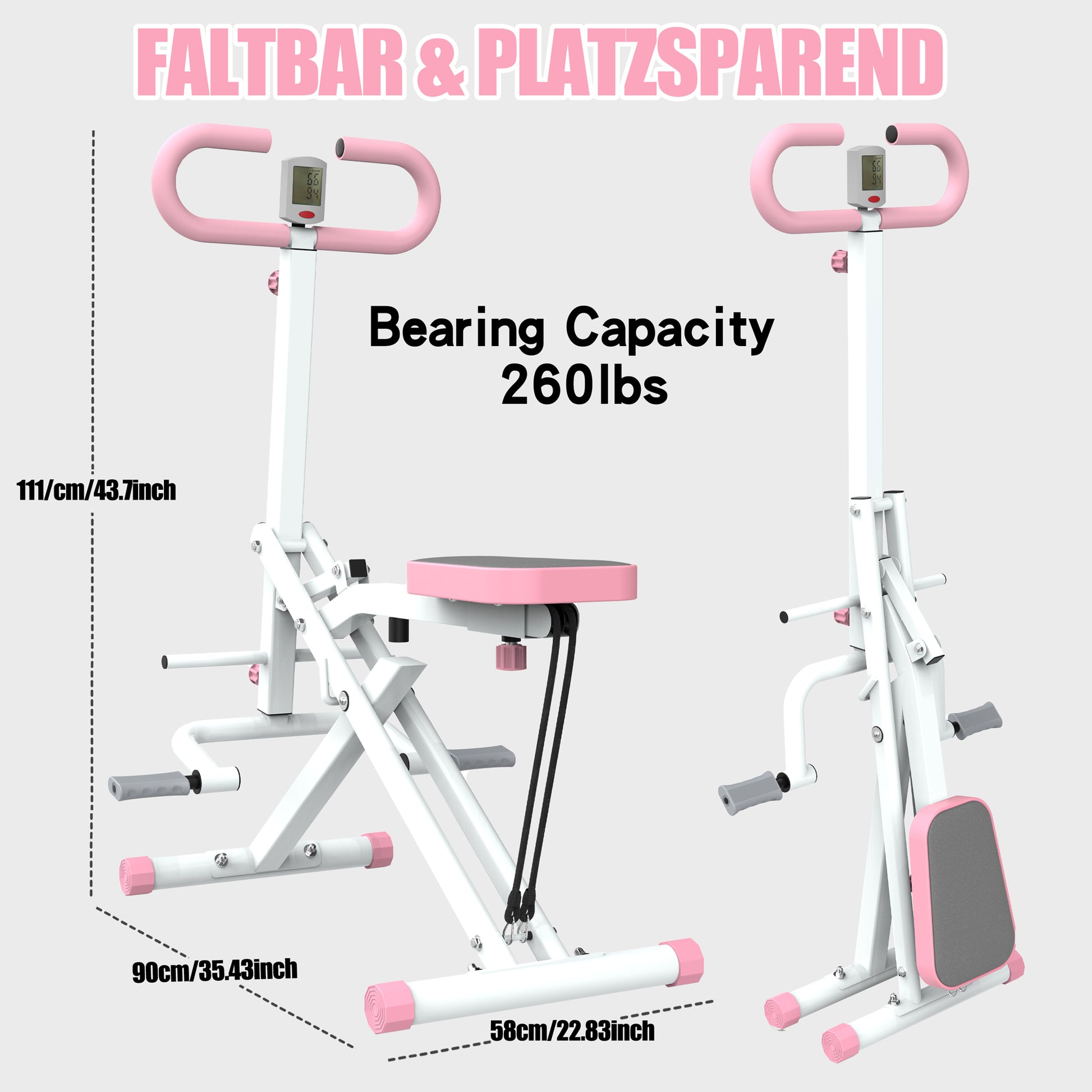 【Adjustable Seat & Resistance Bands】 Enhance your stability with the wide, swiveling pedals and adjustable seat with a non-slip grip. The squat machine includes resistance bands that can be added or removed to adjust the resistance of your workout to your fitness level.