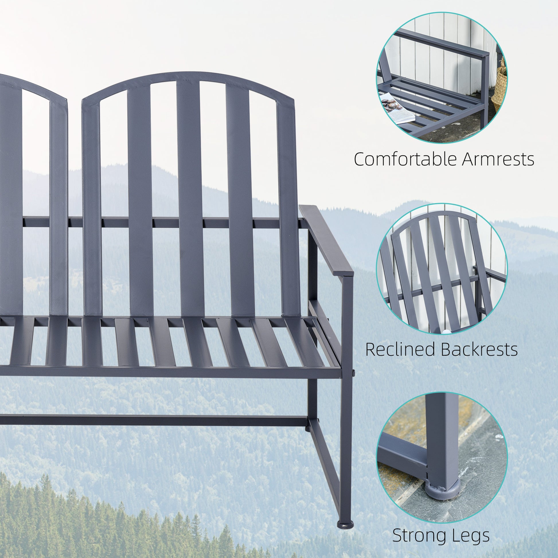 Steel Patio Garden Bench Loveseat Slatted Design Grey Metal