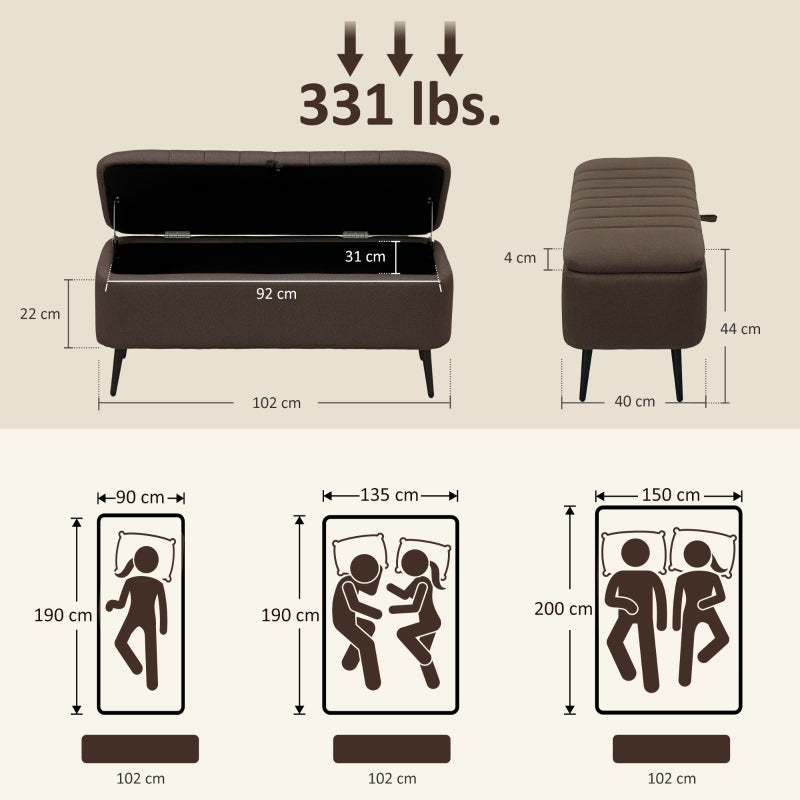 Storage Ottoman 92 x 31cm Dark Brown Linen-Look