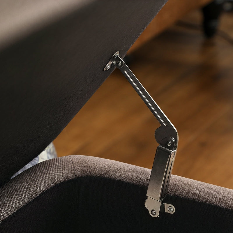 The padded top allows you to sit on this ottoman comfortably, with the linen-look upholstery feeling smooth on the skin. The steel legs support this storage stool, whether you are sitting on it or using it for storage.