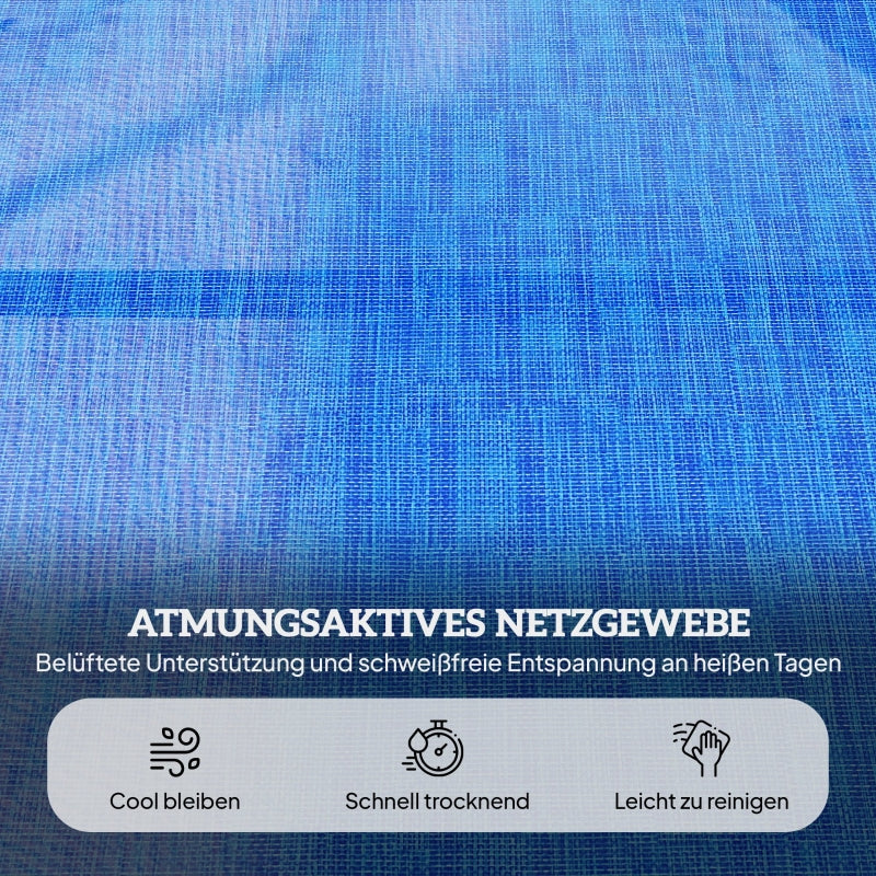 Comfortable Seating Experience: This folding sun lounger features a metal frame with a powder-coated finish, wrapped in weatherproof, breathable mesh fabric. This makes it highly durable, easy to clean, and UV-resistant. The outdoor lounge chair includes a face-hole and a wide seat for added comfort, creating a sense of ease and simplicity.