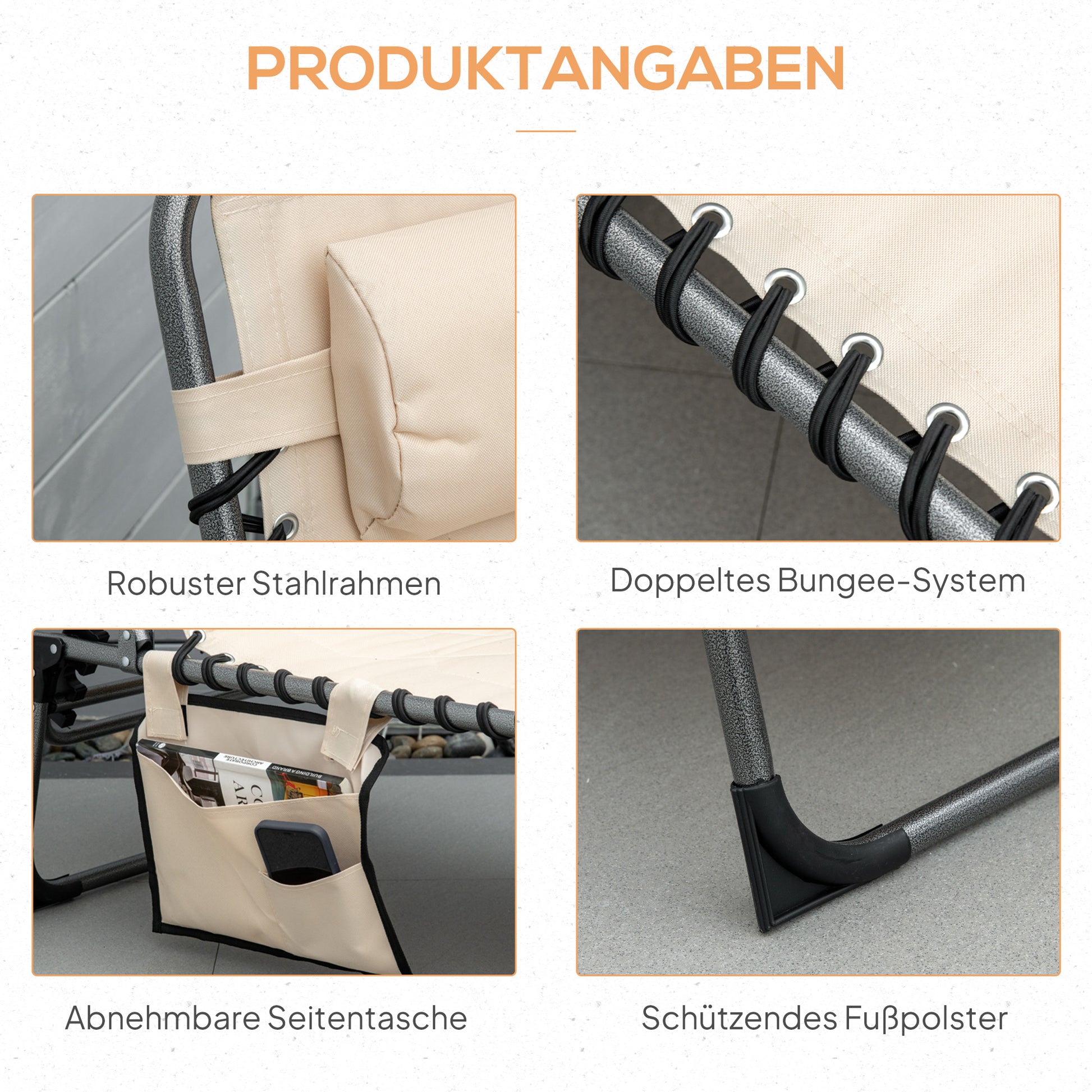 Comfortable: The foam padding with the Oxford fabric cover of the camping lounger offers high comfort and durability, and the padded headrest provides additional comfort. A side pocket offers space for cell phones, magazines, and other small items.